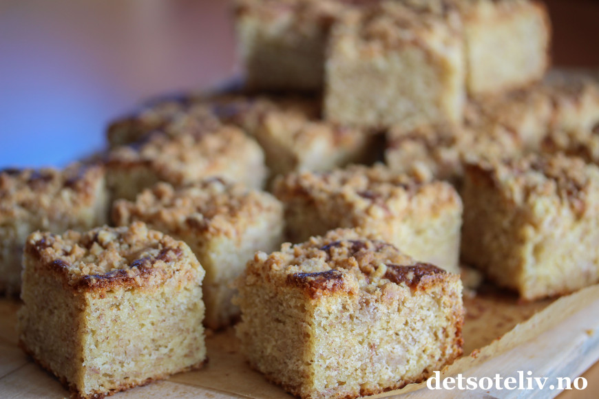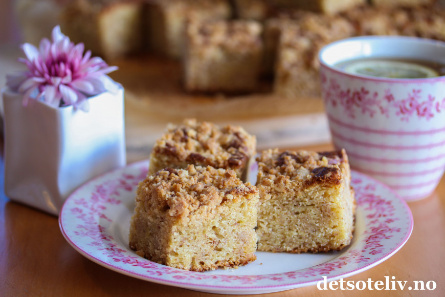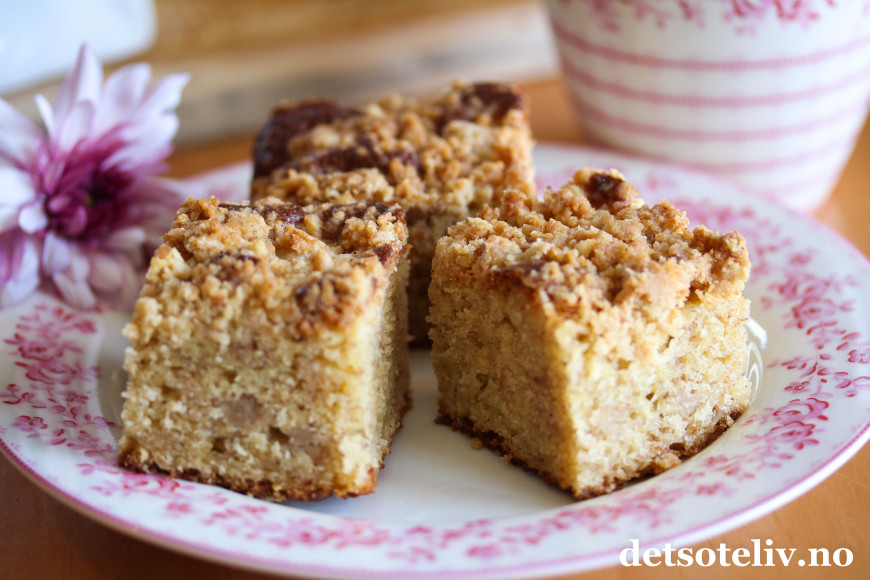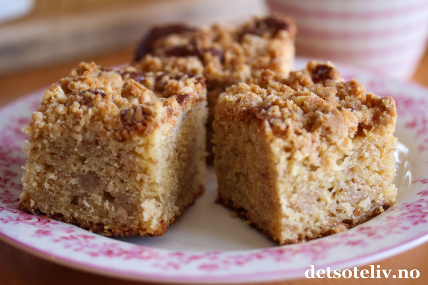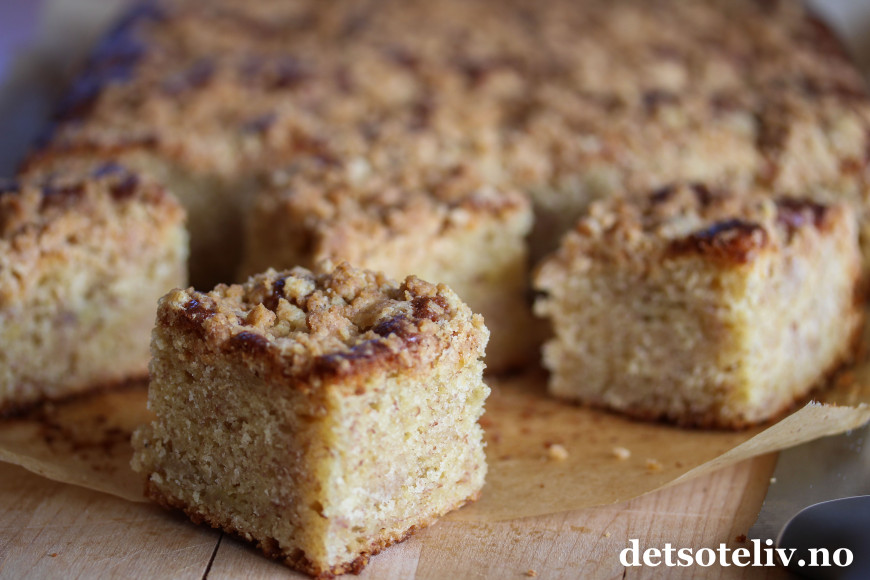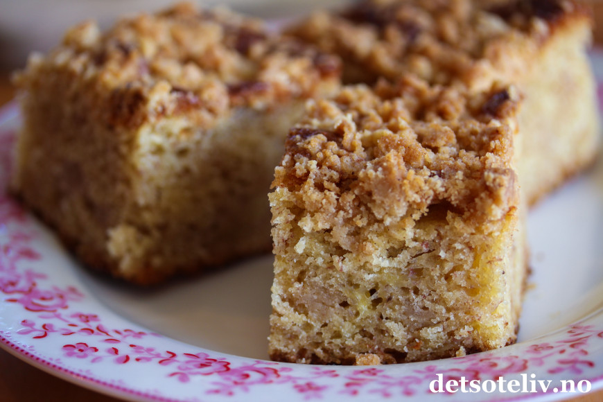 Kaken er inspirert av den amerikanske kaken "Banana Crumb Cake" - derav navnet..