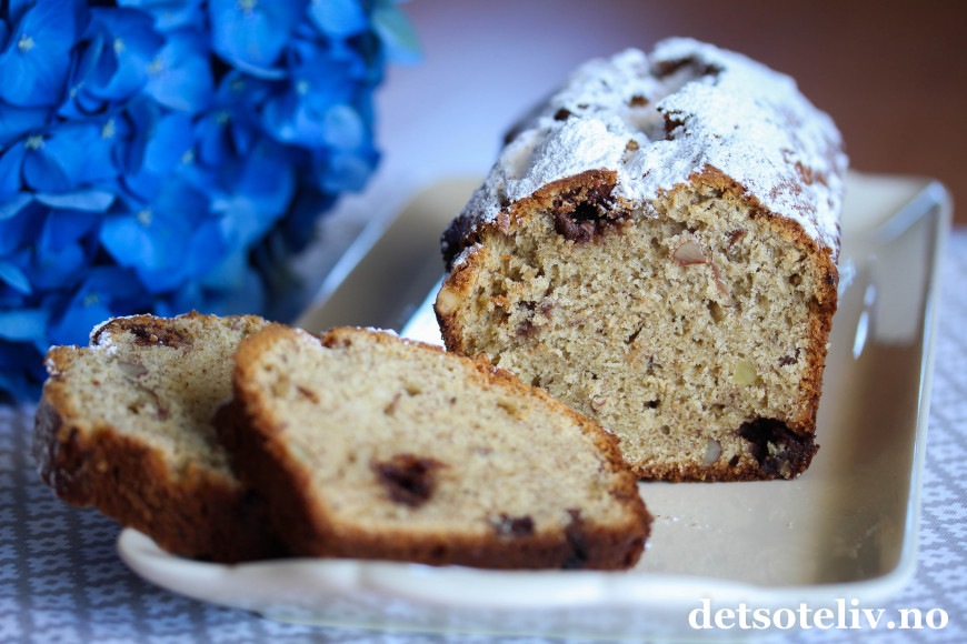 En utrolig nydelig og original, liten banankake med hakkede mandler og Cuba-sjokolade!