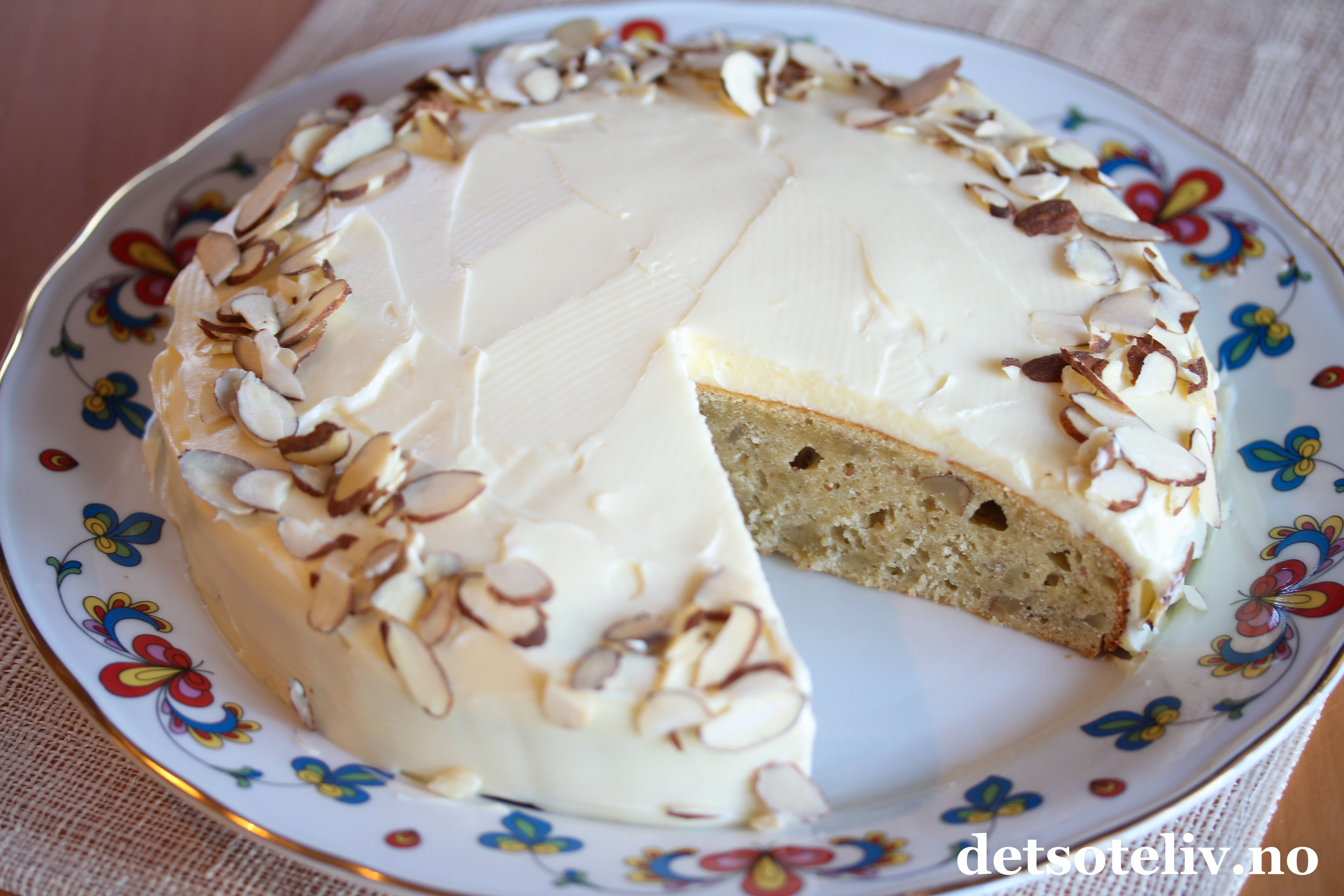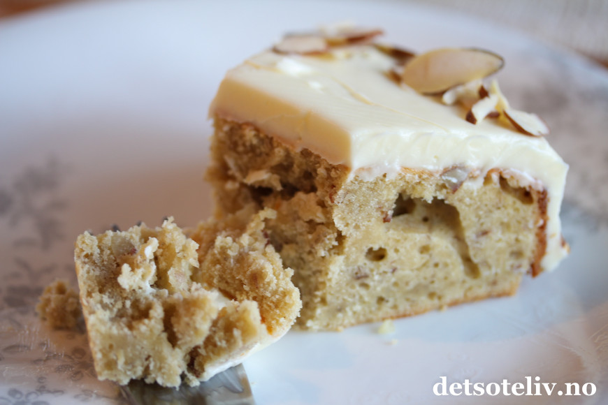 Denne banankaken inneholder sitronsaft og hakkede mandler. Kaken kan gjerne glaseres med deilig ostekrem.