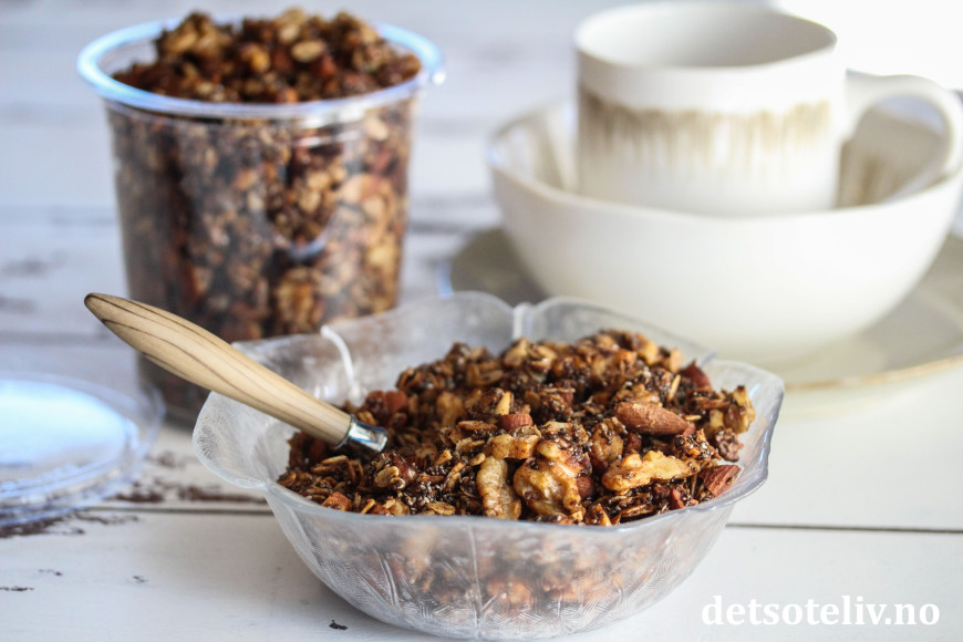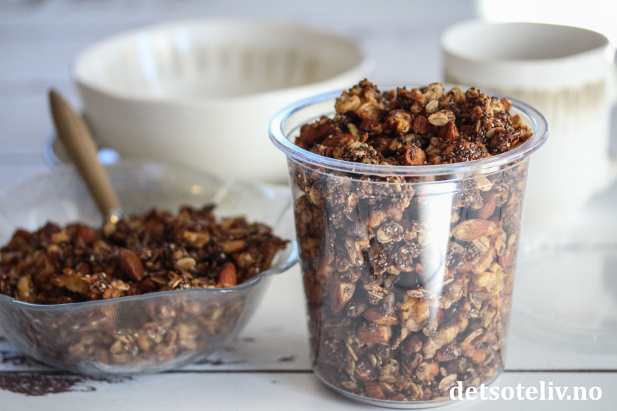 Gode vaner i hverdagen kan jo for eksempel bety å lage seg hjemmelaget granola med masse havregryn, chiafrø og nøtter - og den trenger slettes ikke å være kjedelig! 😃