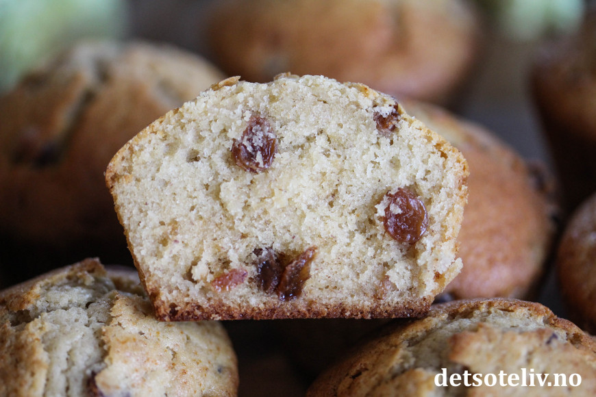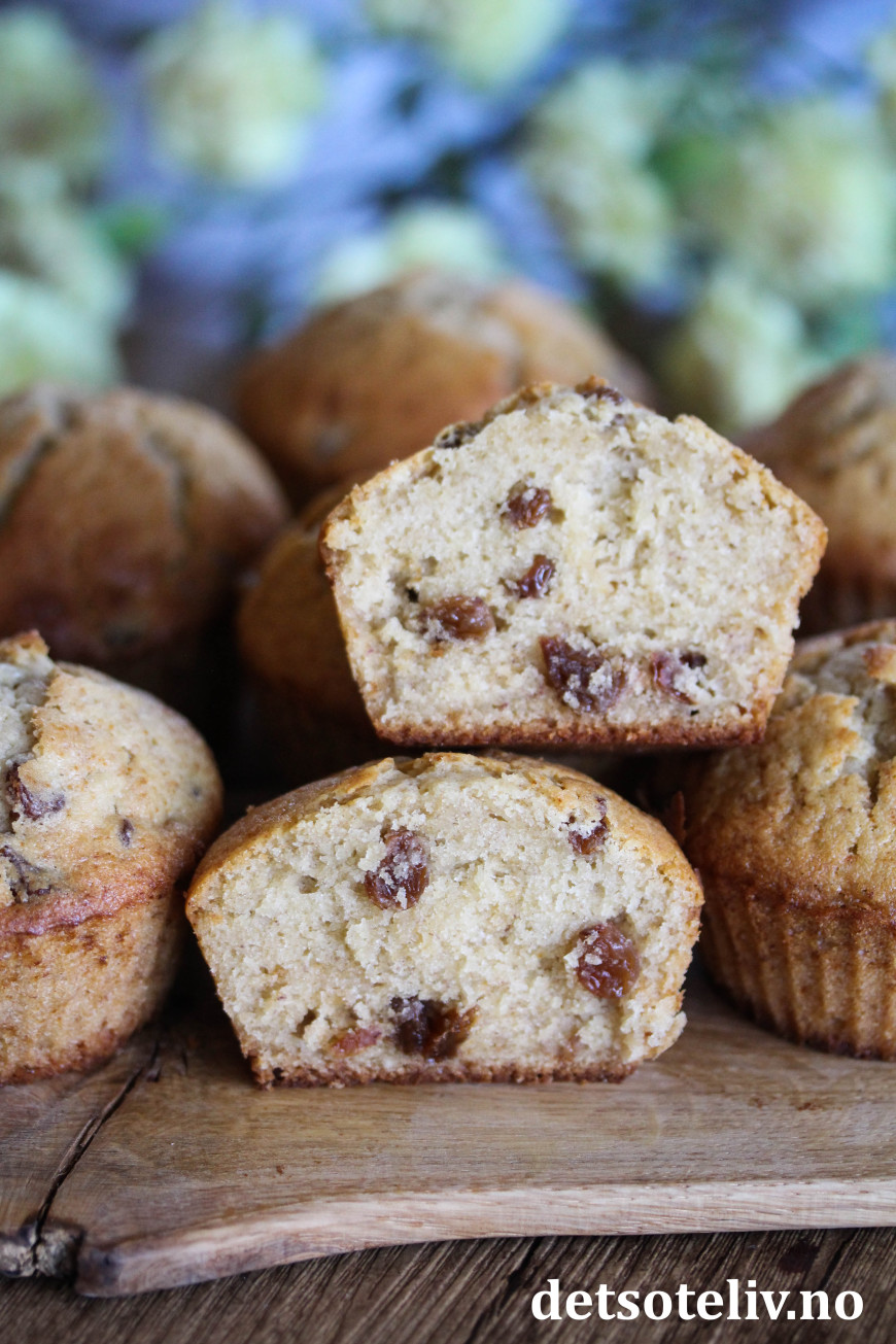 Lyse rosiner (sultanarosiner) har søt og mild smak og passer best til disse muffinsene.