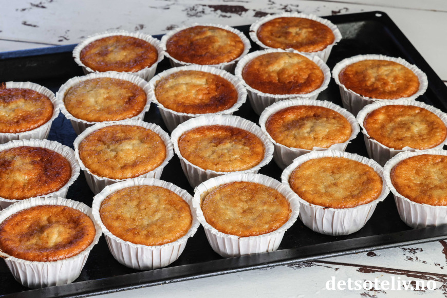 ♥ Jeg har her brukt store muffinsformer. Du kan bruke mindre muffinsformer også, men da blir muffinsene selvfølgelig mindre og trenger kortere steketid (ca. 15 minutter).