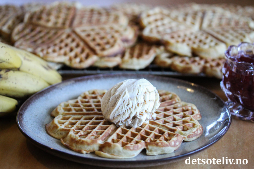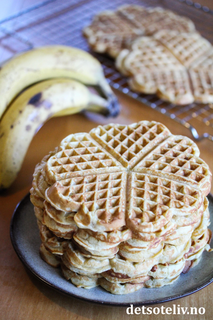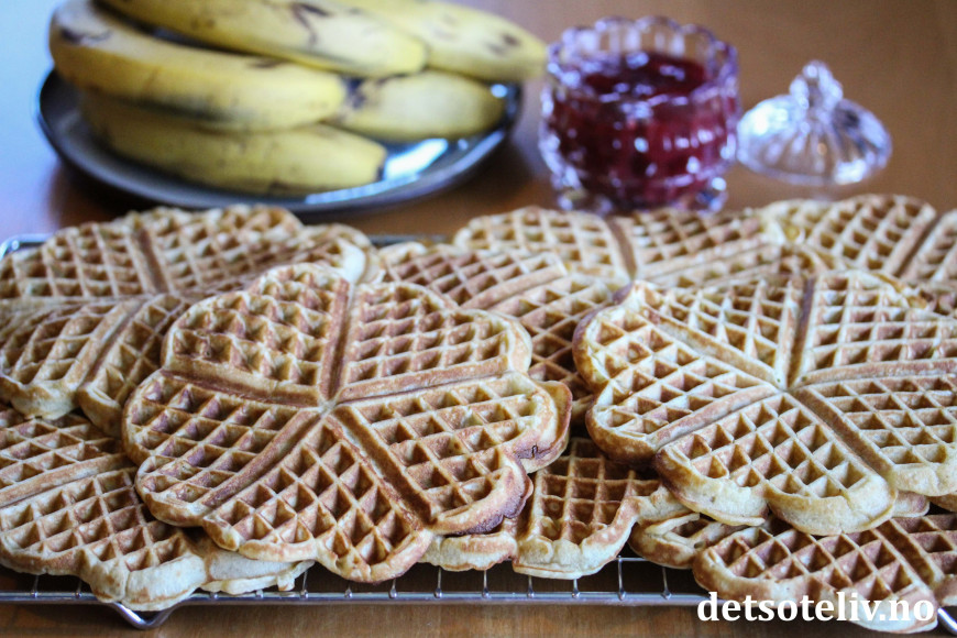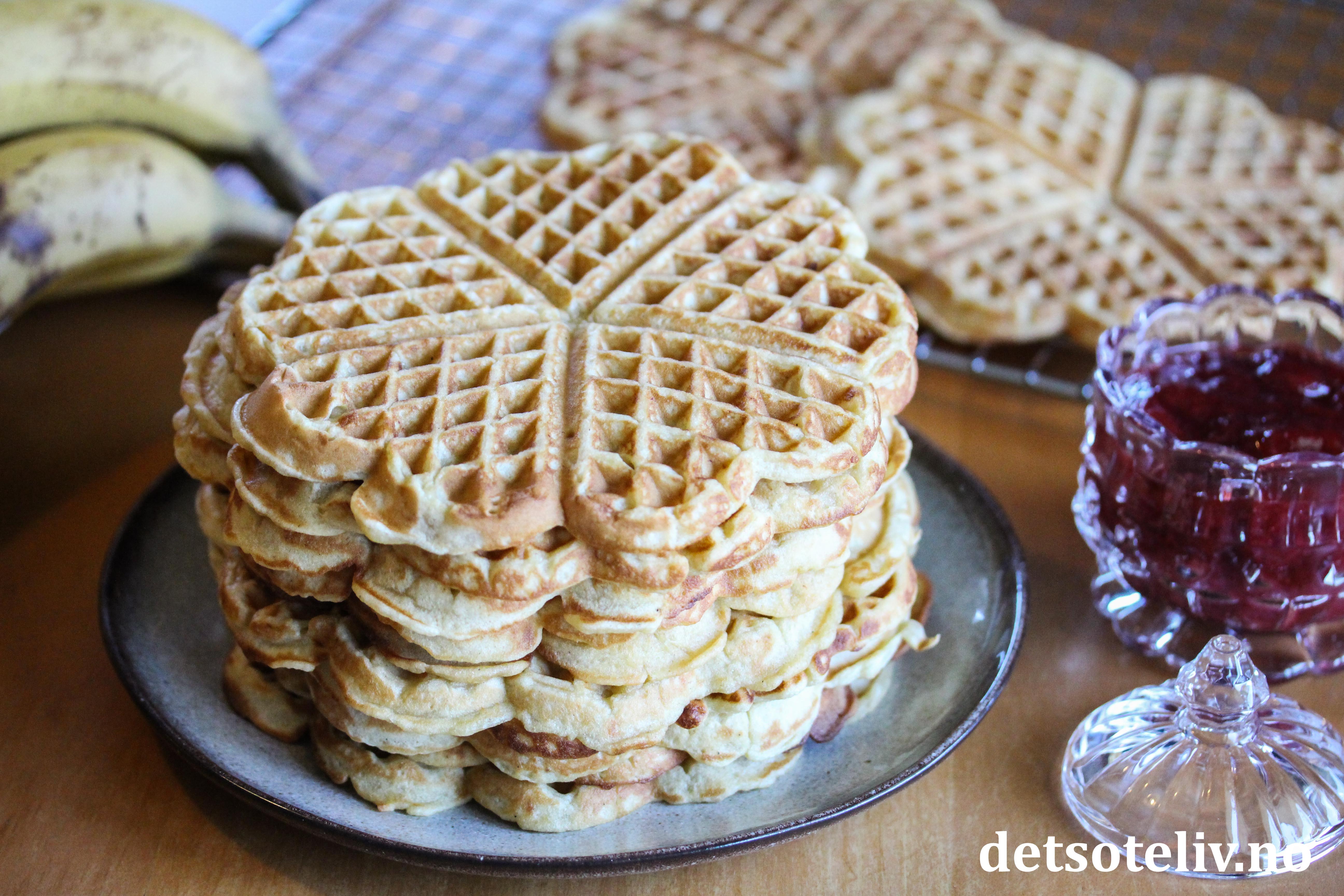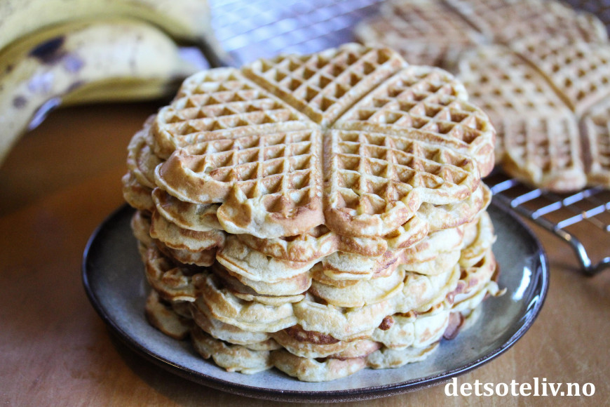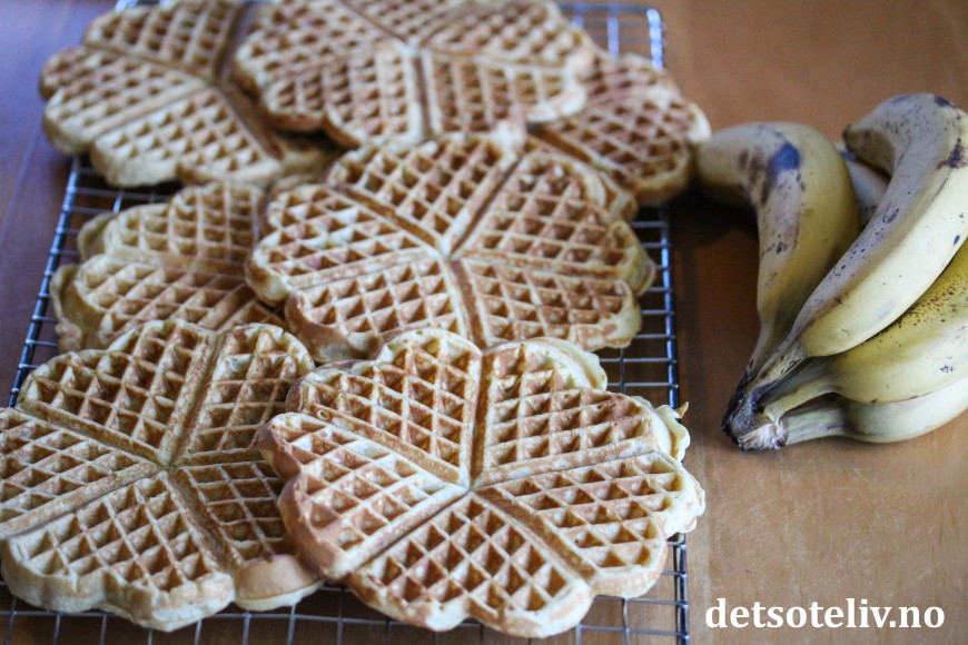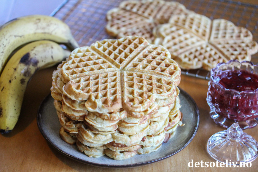 ♥ Du kan i grunnen lage Bananvafler av de fleste typer vaffeloppskrifter ved å tilsette noen moste bananer.