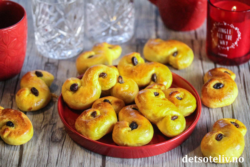 Oppskriften på "Barnas Luciaboller" fikk jeg av barnehagebestyrerinnen på fjorårets Luciafeiring i barnehagen. På alle bord stod det store kurver med søte, rare, skjeve og alldeles fortryllende, små Luciaboller - laget av og for skjønne barnehender. Lucia betyr lys, og St. Lucia er lysets beskytter. Det synes jeg passer ekstra godt med tanke på "Barnas Luciaboller".