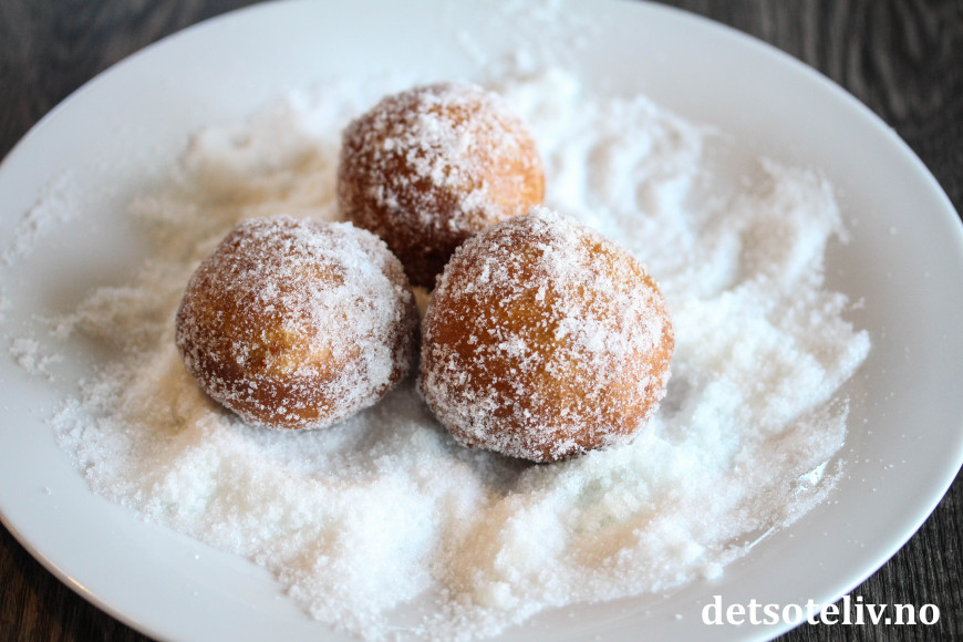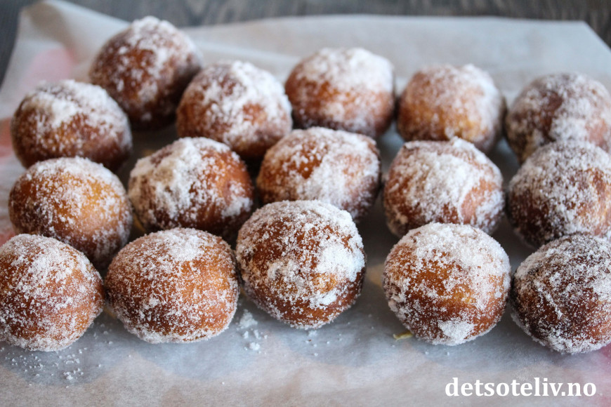 Snu litt rundt på bollene slik at sukkeret fester seg rundt hele overflaten.