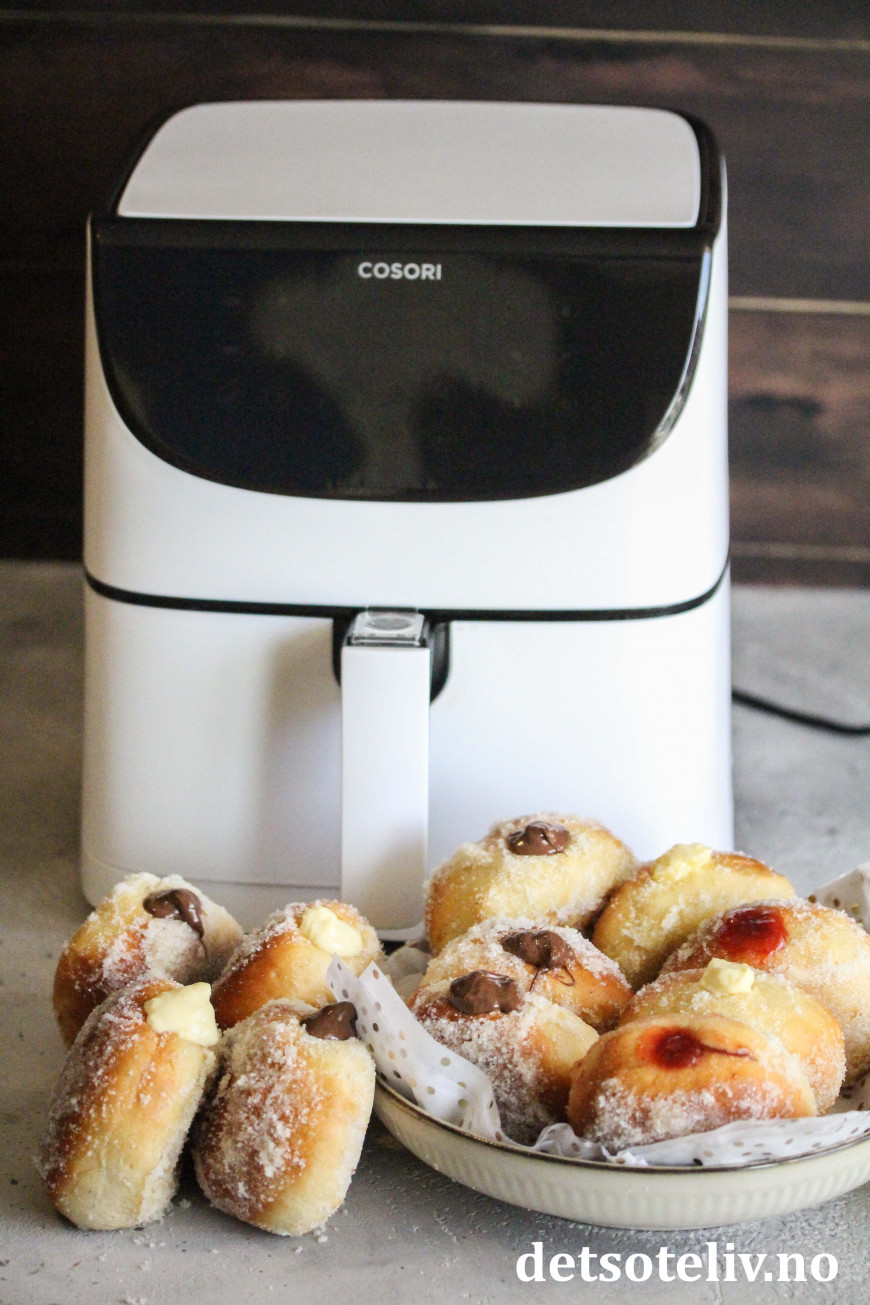 Det er virkelig helt utrolig at det går an å lage seg deilige, myke Berlinerboller helt uten frityrsteking. Dette altså takket være denne fine airfryeren!