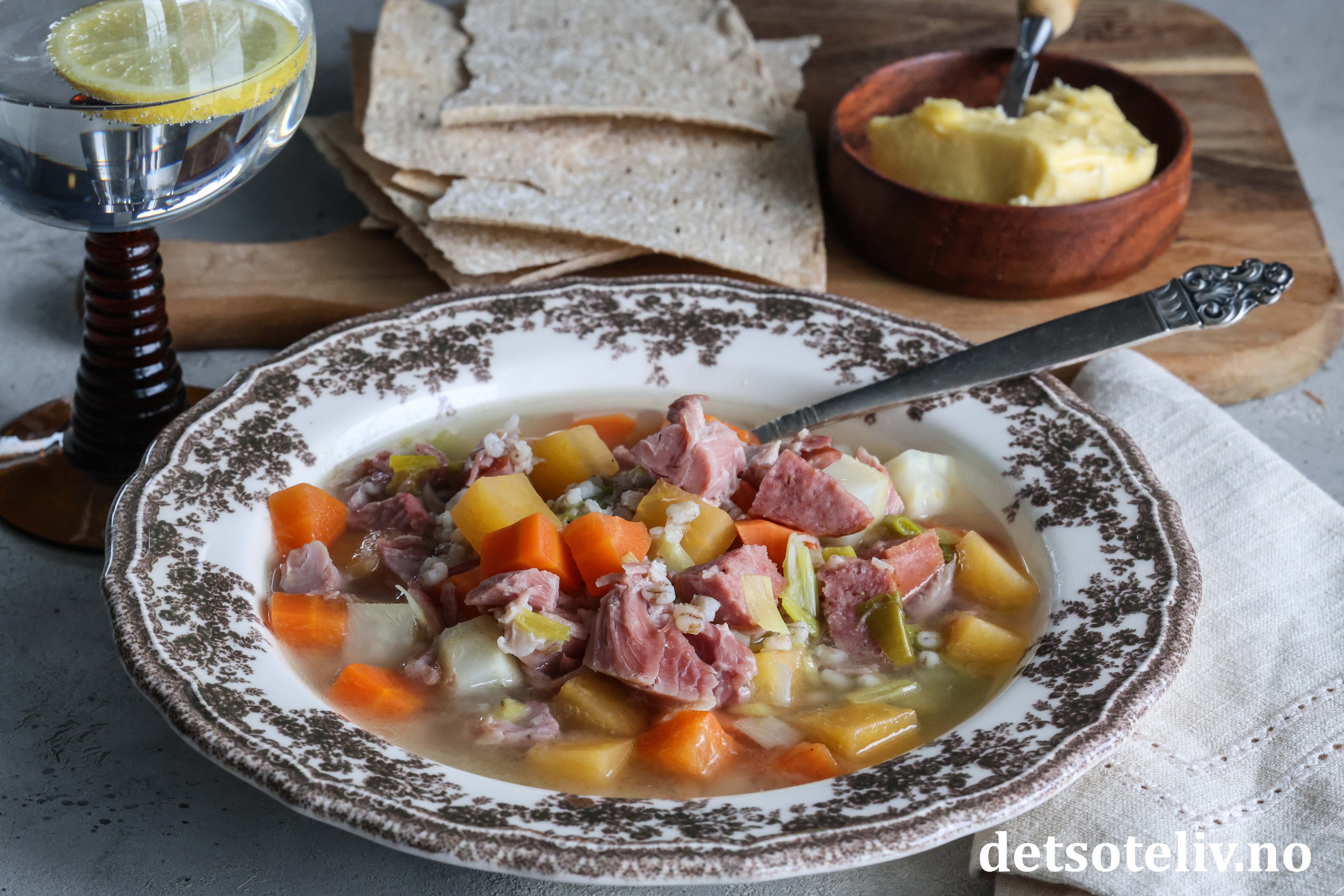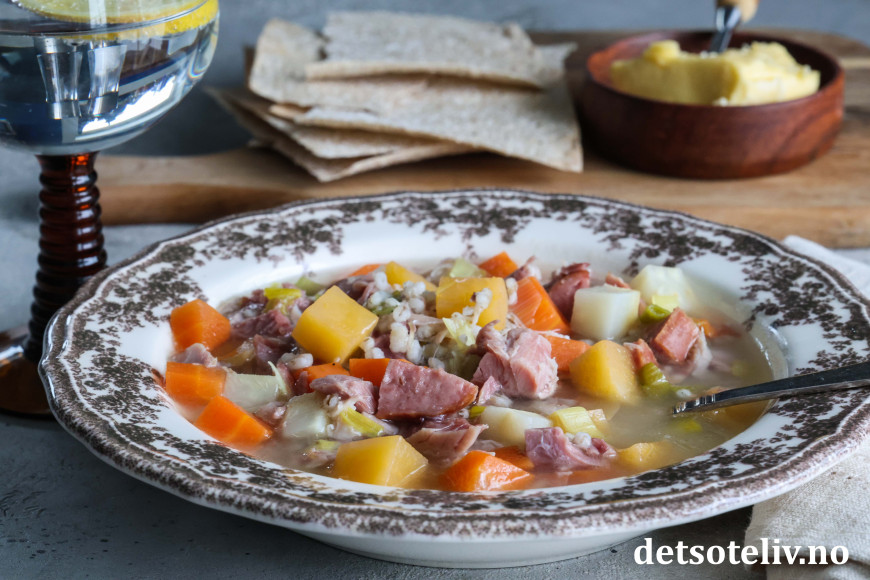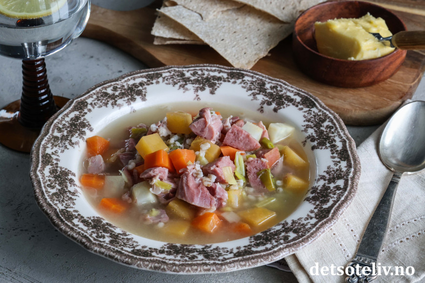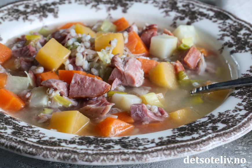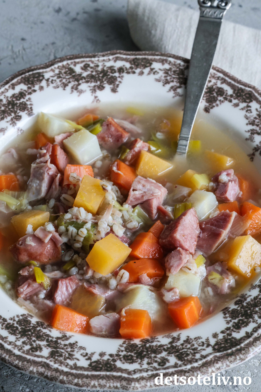 Se også Kjøttsuppe med byggryn og Gul ertesuppe med svineknoke.