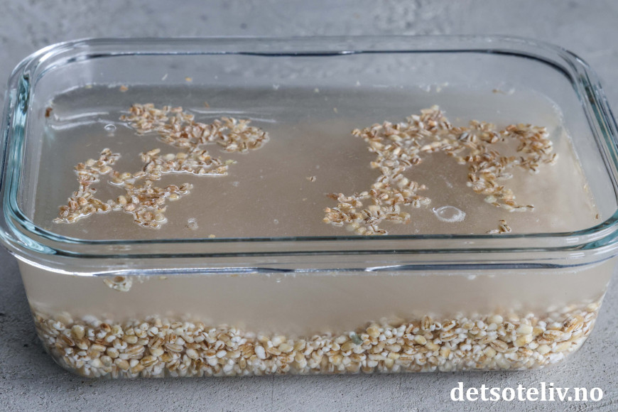 Start dagen i forveien med å legge byggryn i bløt (dobbel mengde vann som gryn). Dekk til og sett i kjøleskapet til dagen etter.