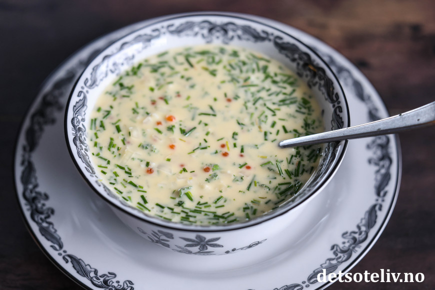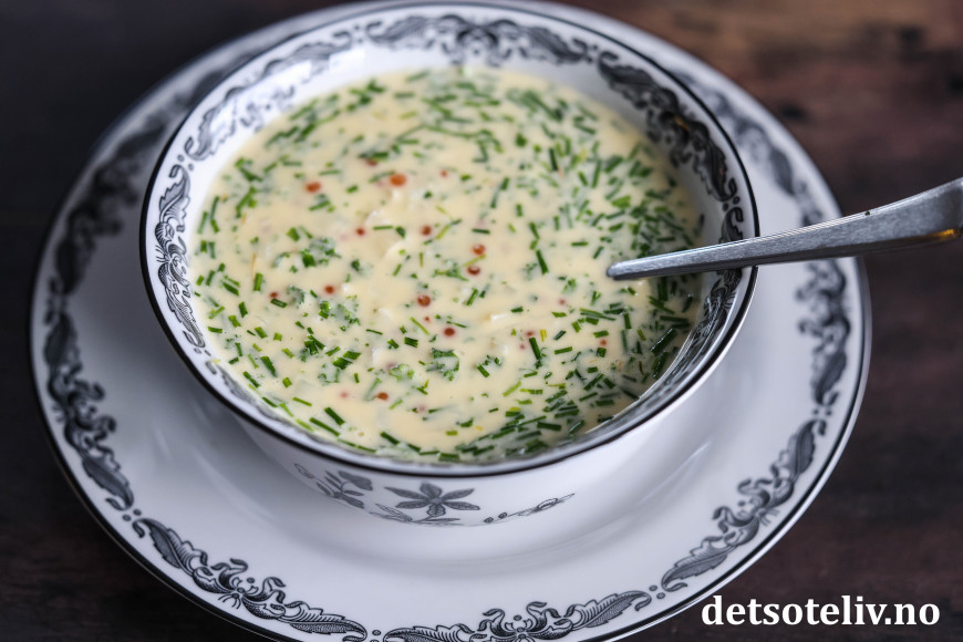 Smak eventuelt til med litt kvernet salt og hvit pepper.