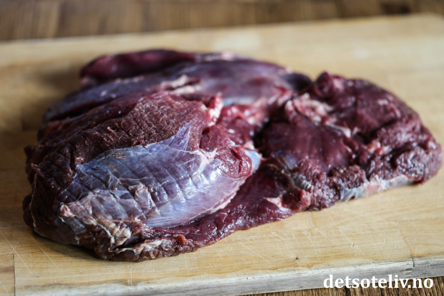 Dersom du ikke får tak i slike kjøttstykker av reinsdyr, går det også an å bruke reinsdyrskav, som fås kjøpt i de fleste norske matbutikkene.