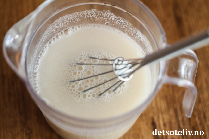Visp melet sammen med vann (pass på at alle melklumper fjernes).