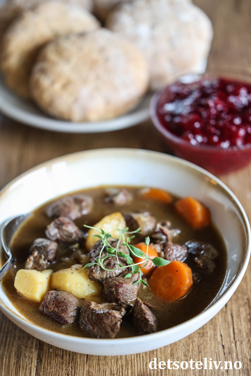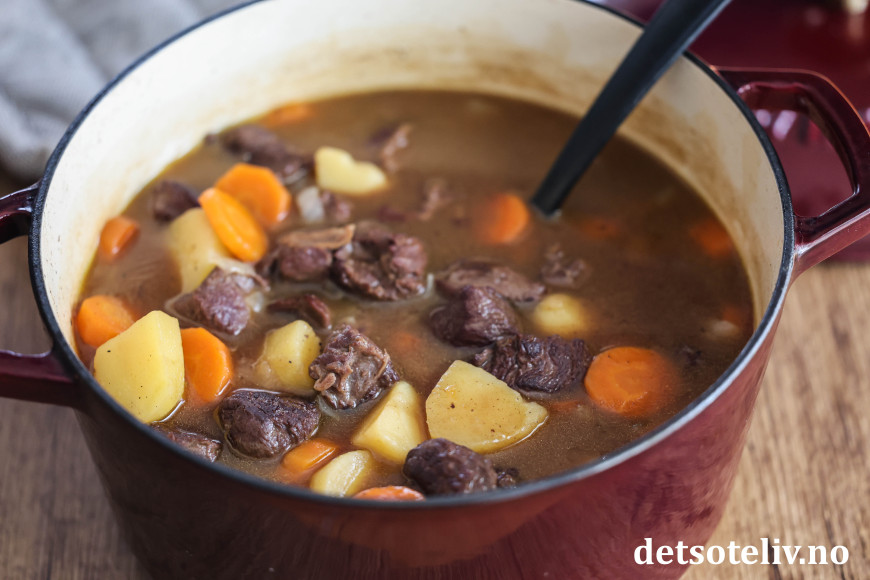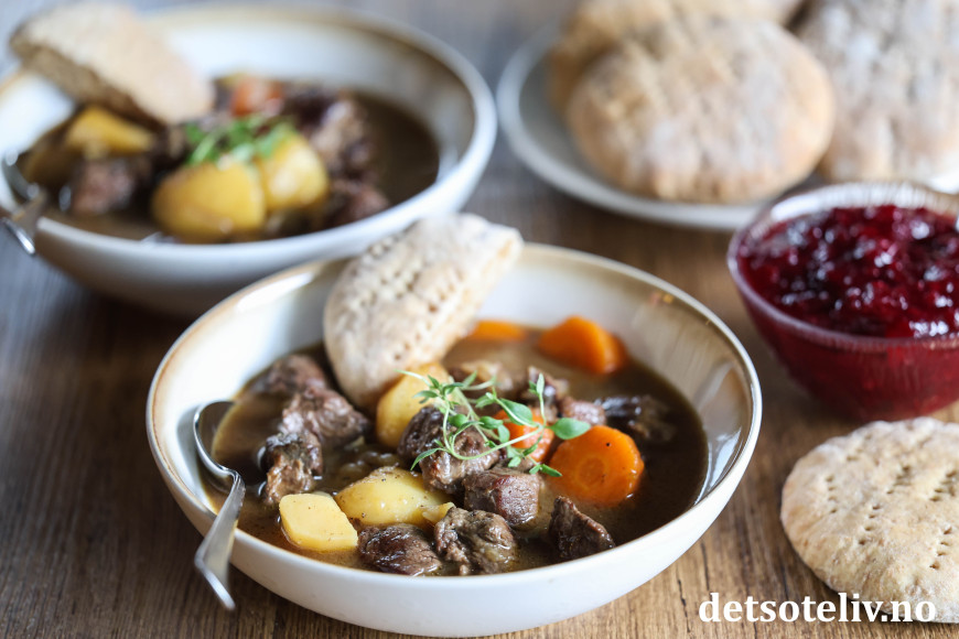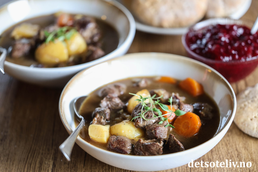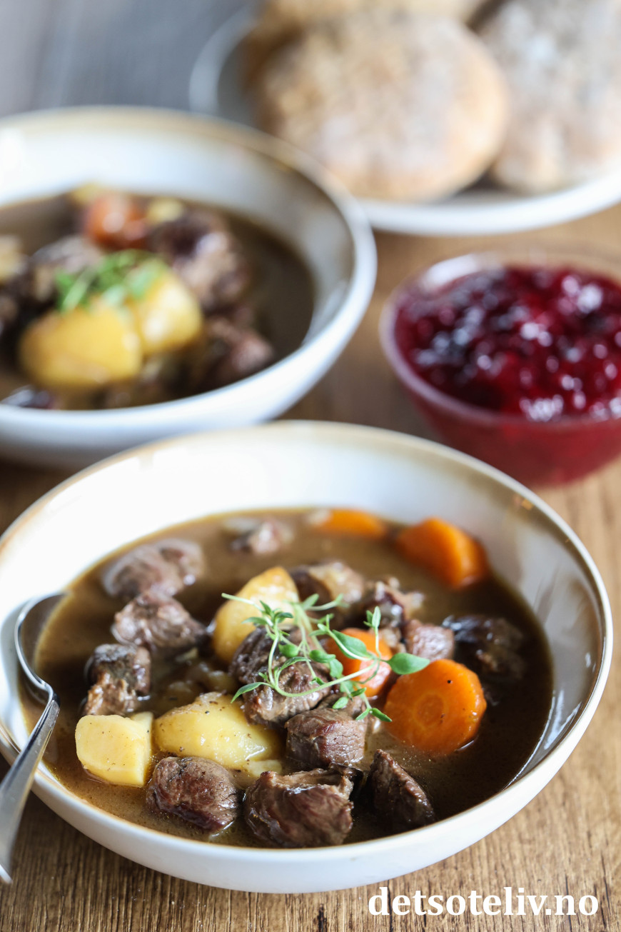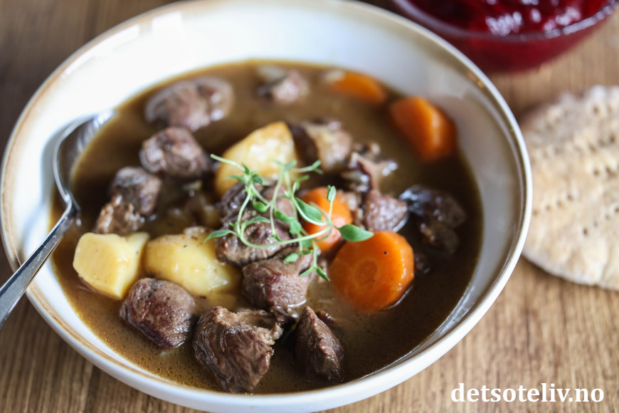 Deilig, mettende Bidos med kjempegod smak av reinsdyrkjøtt, poteter, gulrøtter og løk!