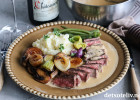 Server sammen med blandingen av stekt løk og sopp, aspargesbønner og hjemmelaget potetmos. Øs over den deilige konjakksausen. Pynt med litt persille.