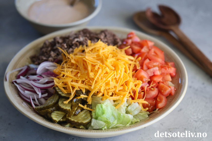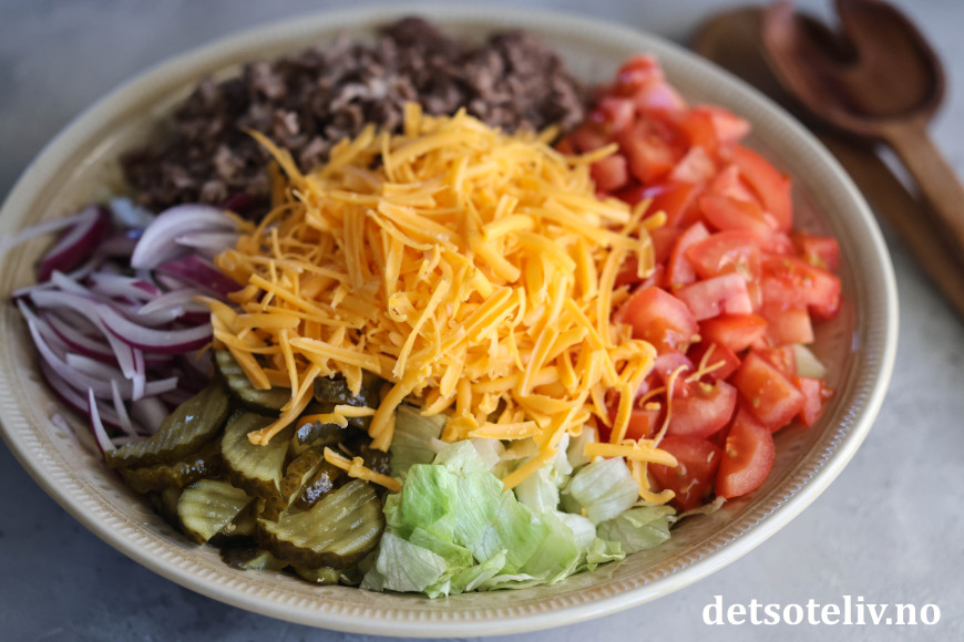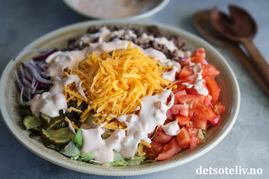 Denne salaten henter de gode smakene fra McDonalds berømte Big Mac Burger.