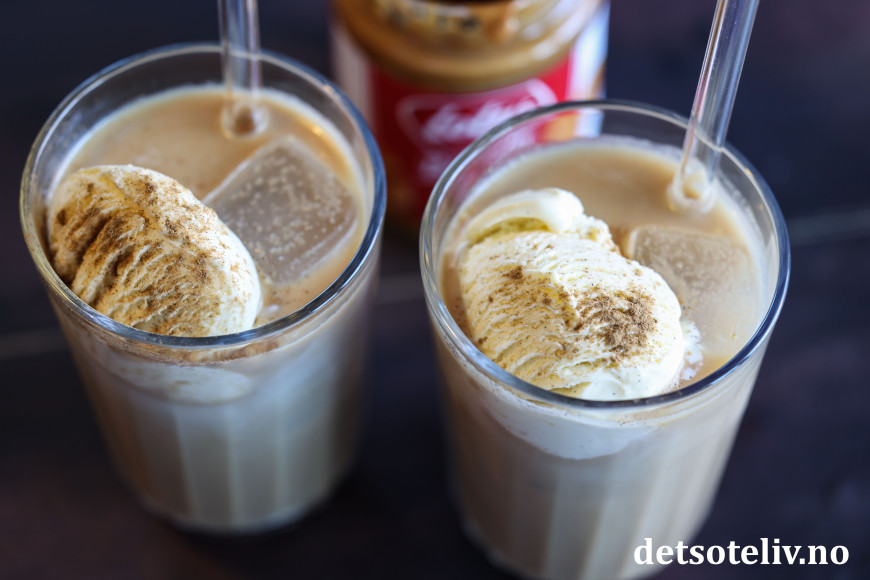 Har du lyst på en ekstra digg iskaffe, kan du toppe med en liten kule vaniljeis og et kaneldryss.