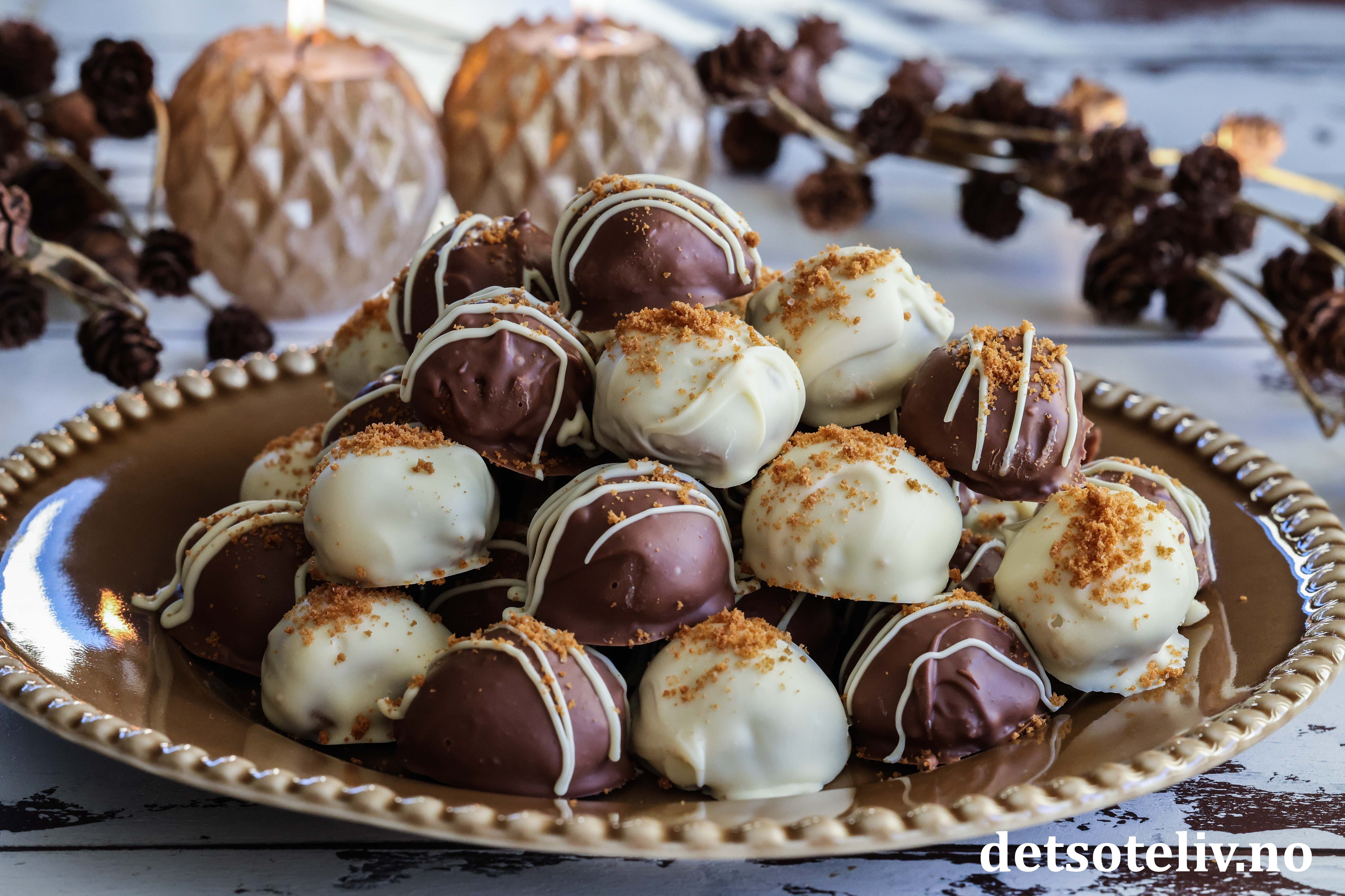 Legg konfektkulene i en boks og oppbevar i kjøleskapet frem til servering.