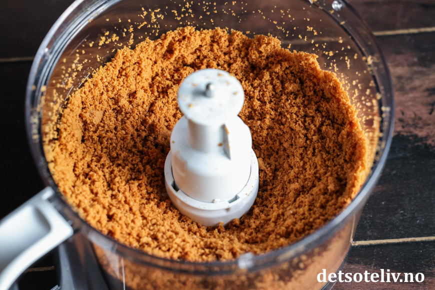 Ha kjeksene i en food processor og kjør dem til smuler.