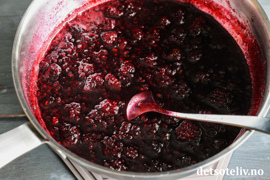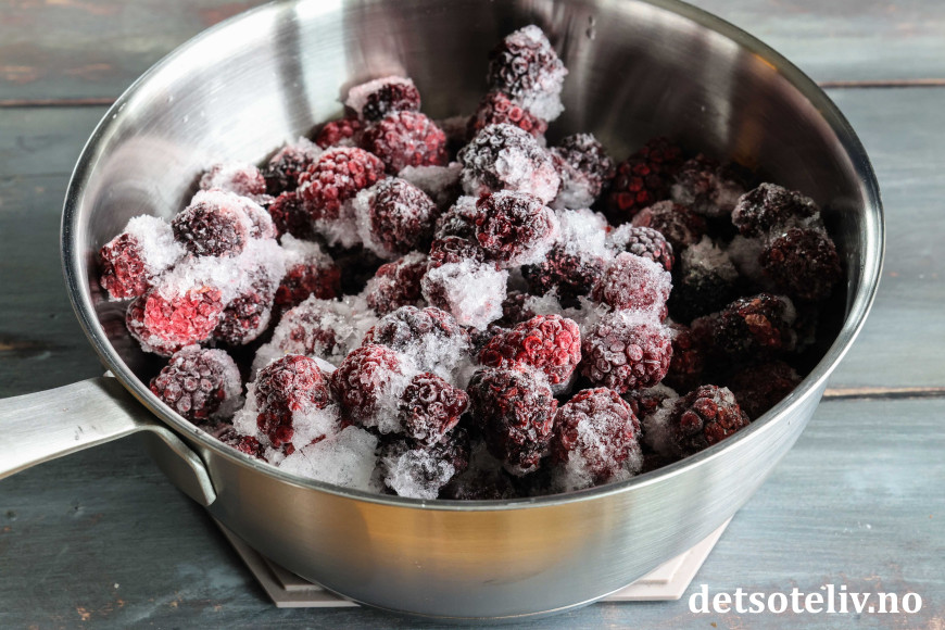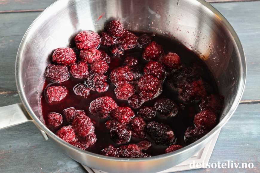 Bruker du frosne bær, kan du gjerne la de ligge og tine en stund i kjelen først.