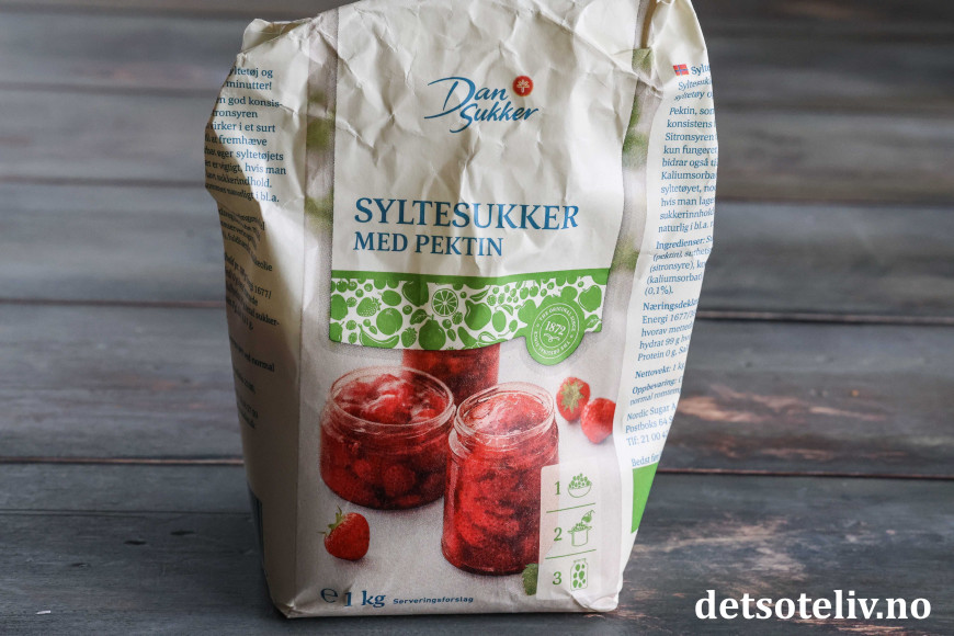 ♥ Syltesukker er sukker tilsatt pektin og fås kjøpt i de fleste velassorterte matvarebutikkene. Pektin gjør at syltetøyet tykner mer enn om du bruker vanlig sukker, men bortsett fra at syltetøyet blir litt tynnere, går det helt greit å lage syltetøy med vanlig sukker.