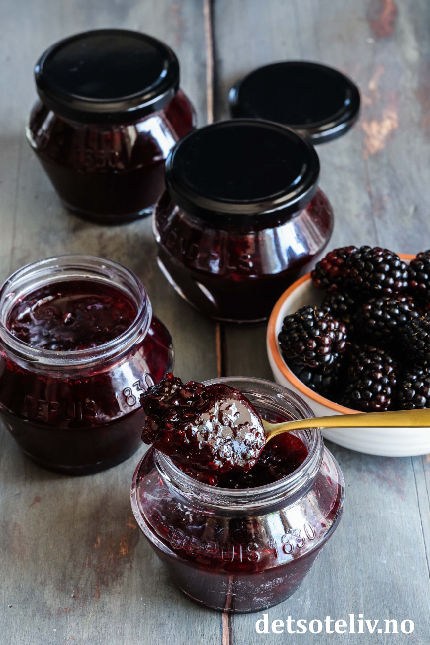 Hjemmelaget bjørnebærsyltetøy er fantastisk godt!