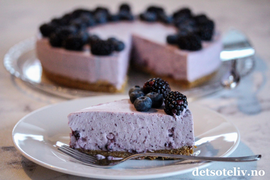"Blå ostekake" blir ekstra god om du tilsetter friske blåbær i tillegg!