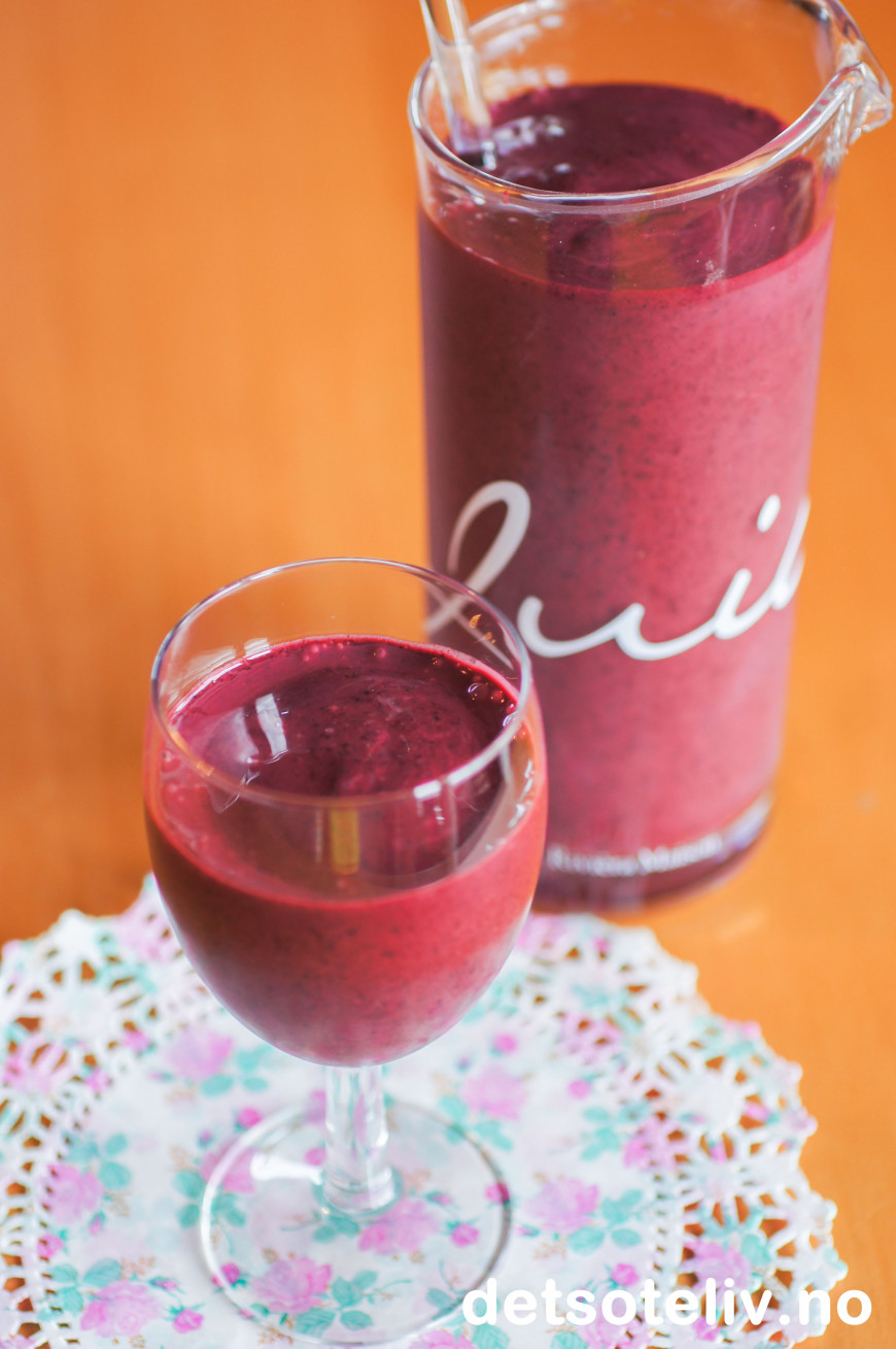 ♥ Du kan lage lignende smoothie med vaniljeyoghurt og andre typer frosne bær. Men denne varianten med blåbær er en av de beste jeg vet om!