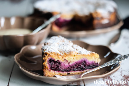 Kaken er også god hvis den lages med bringebær (se Bringebærkake med kesam).