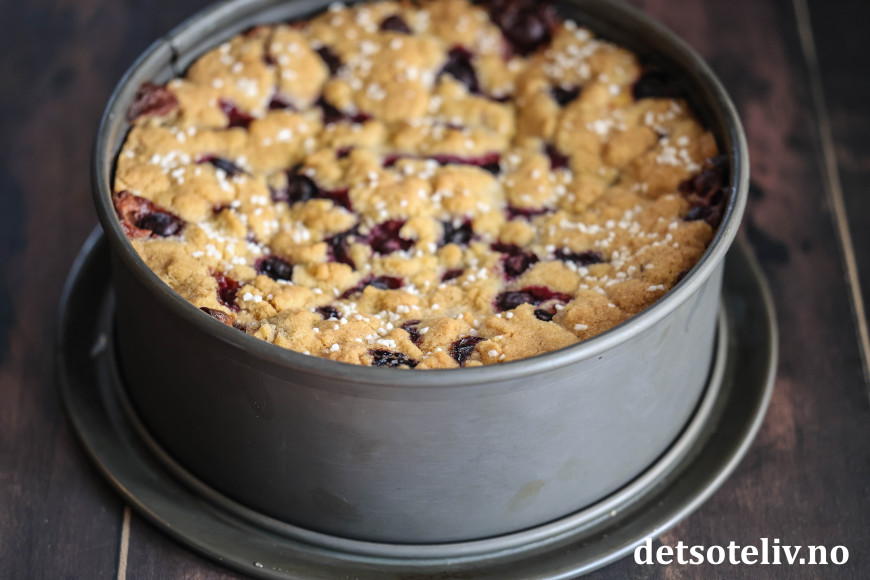 ♥ Kaken kan varieres med ulike type bær og frukter, se eksempelvis Rabarbrakake med vaniljekrem og smuldretopp.