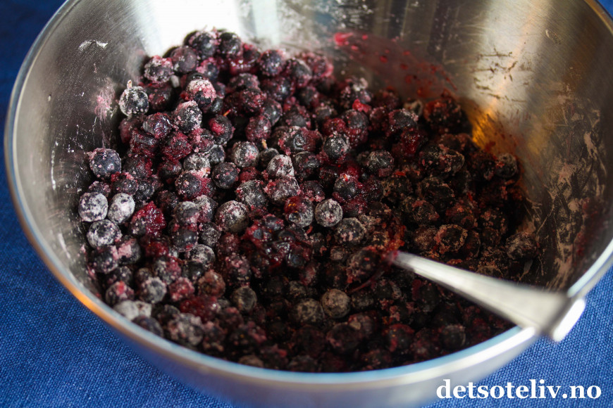 ♥ Jeg har brukt friske blåbær, men frosne kan også brukes og trenger ikke å tines før du har dem i formen.