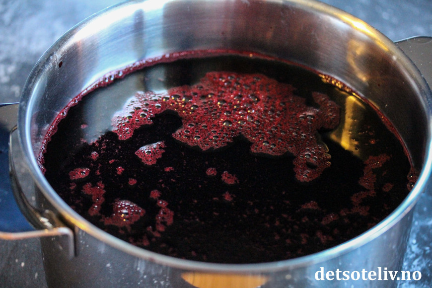 Varm opp saften til kokepunktet og tilsett ønsket mengde sukker. Mengden avhenger av type bær og personlig smak.