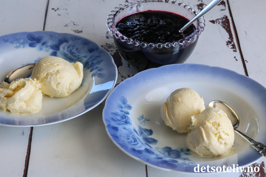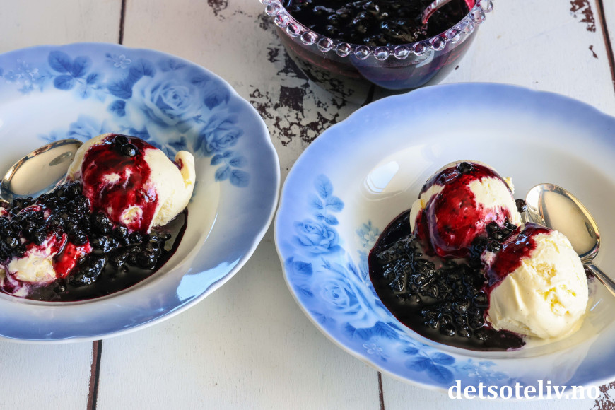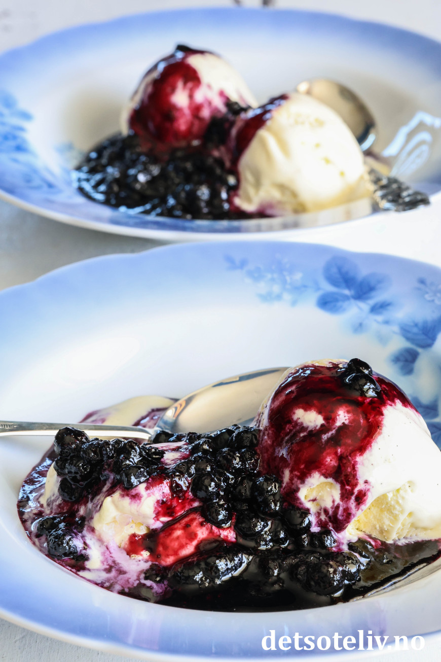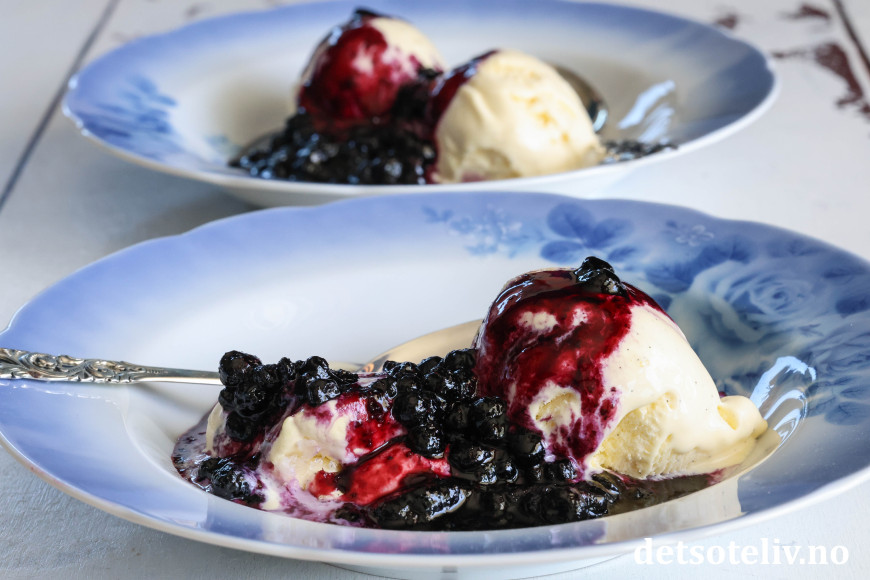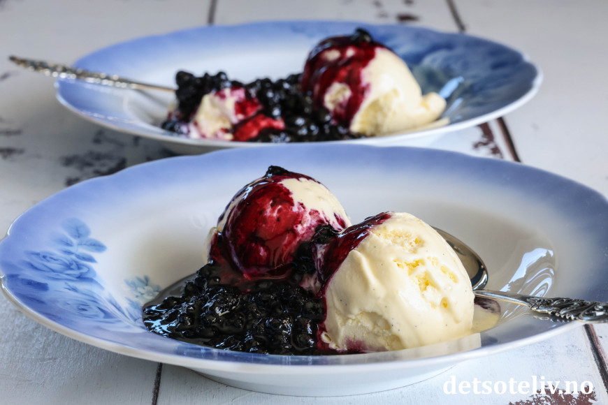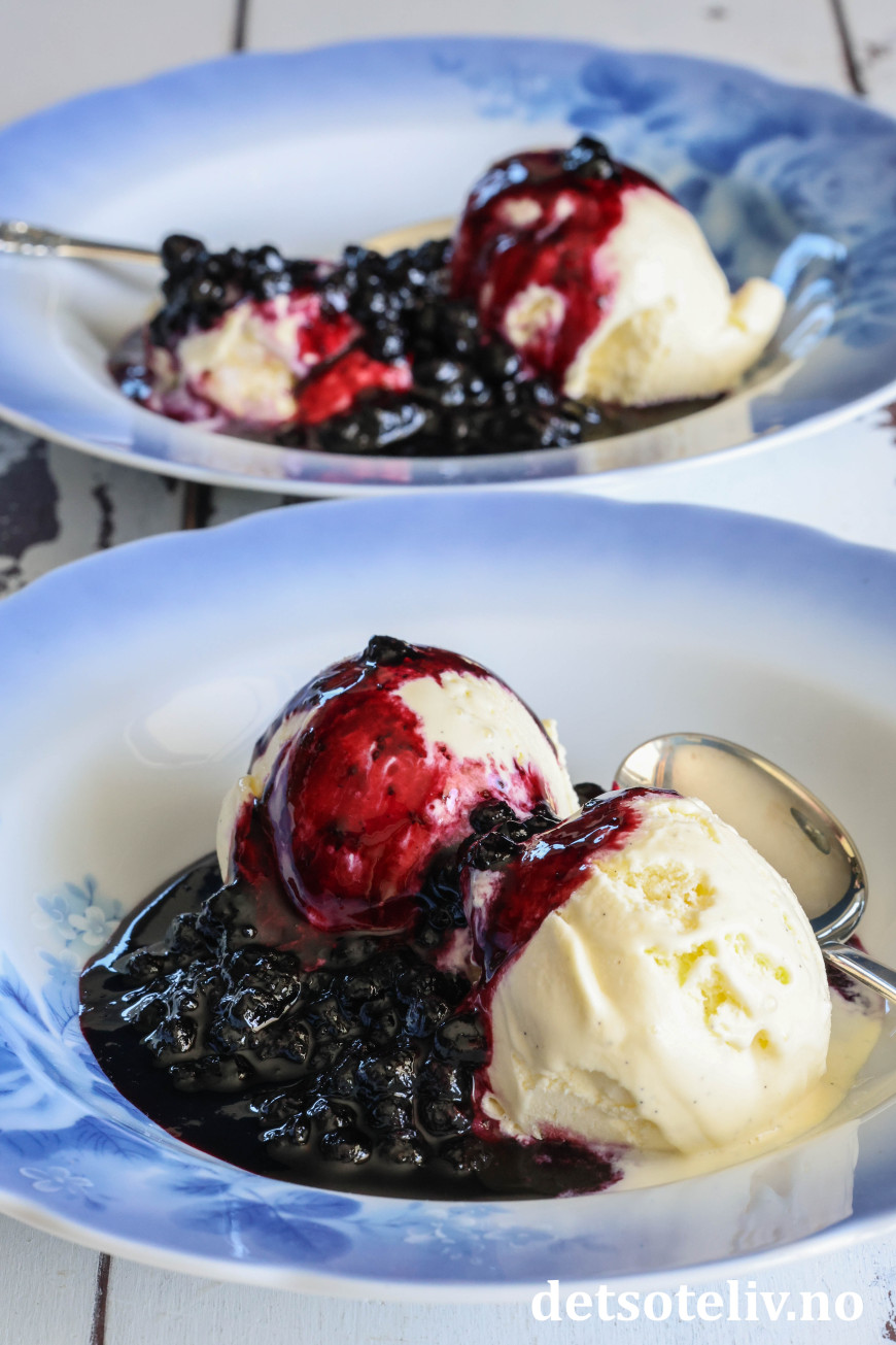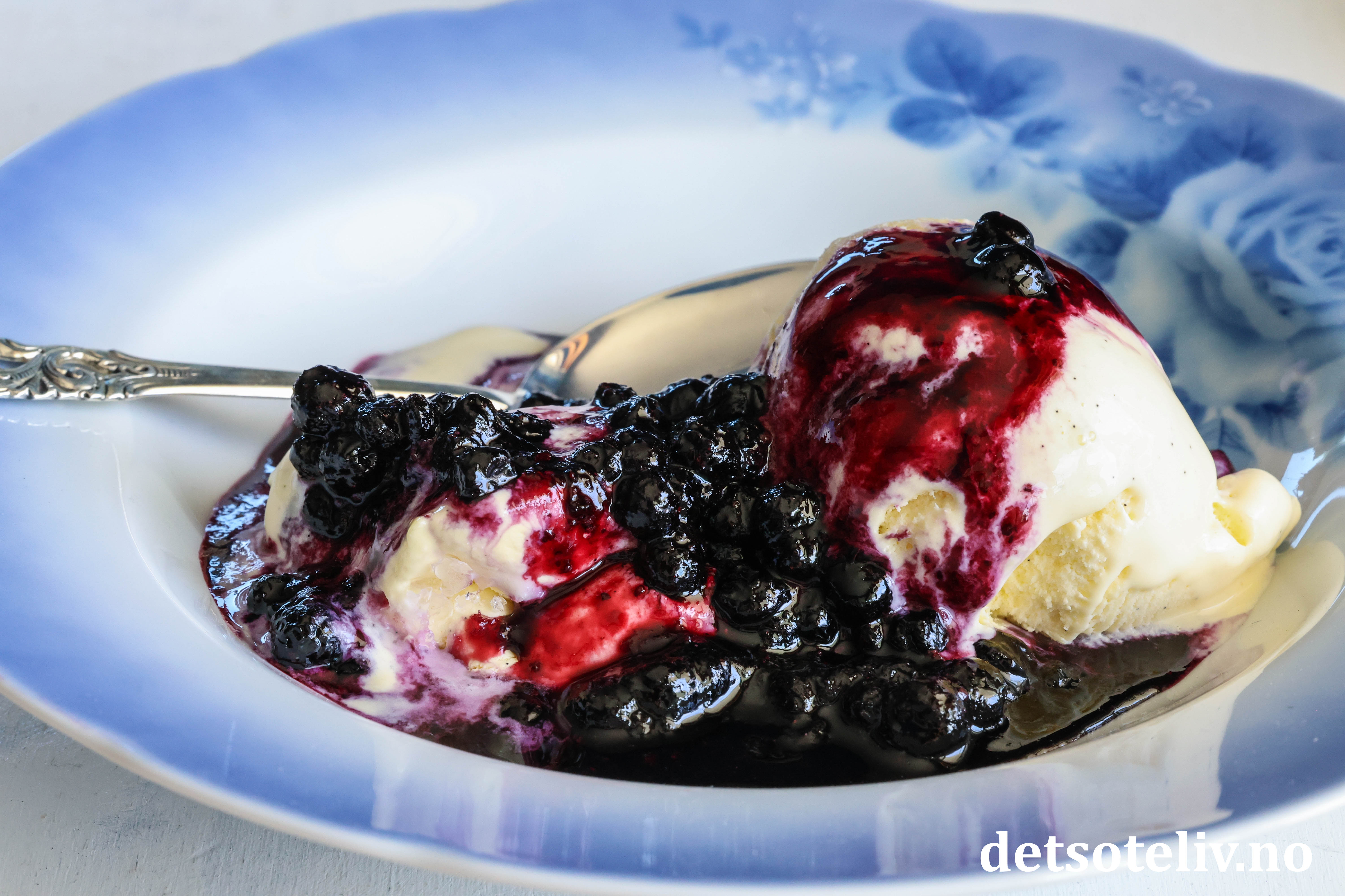 Hjemmelaget blåbærsirup og vaniljeis er en deilig smaksopplevelse!