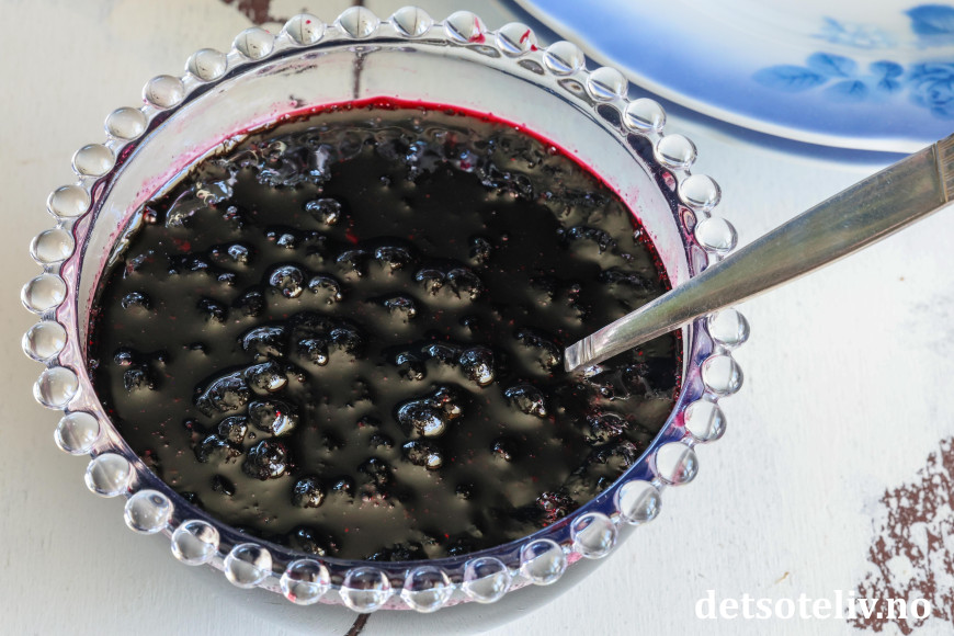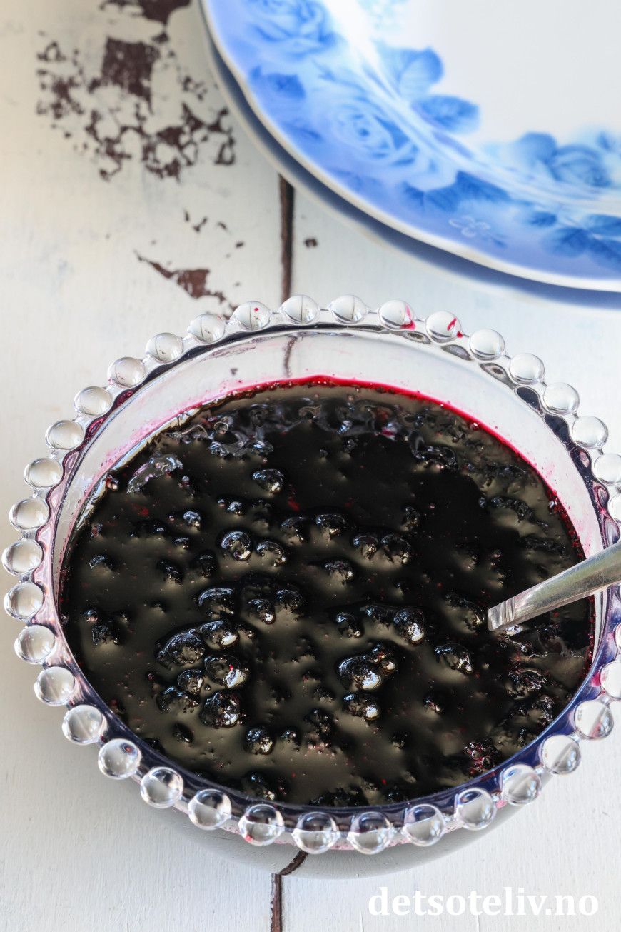 Så er det opp til deg om du vil sile blåbærsirupen for å få en glatt saus eller om du vil beholde blåbærene i sirupen slik jeg har gjort her.