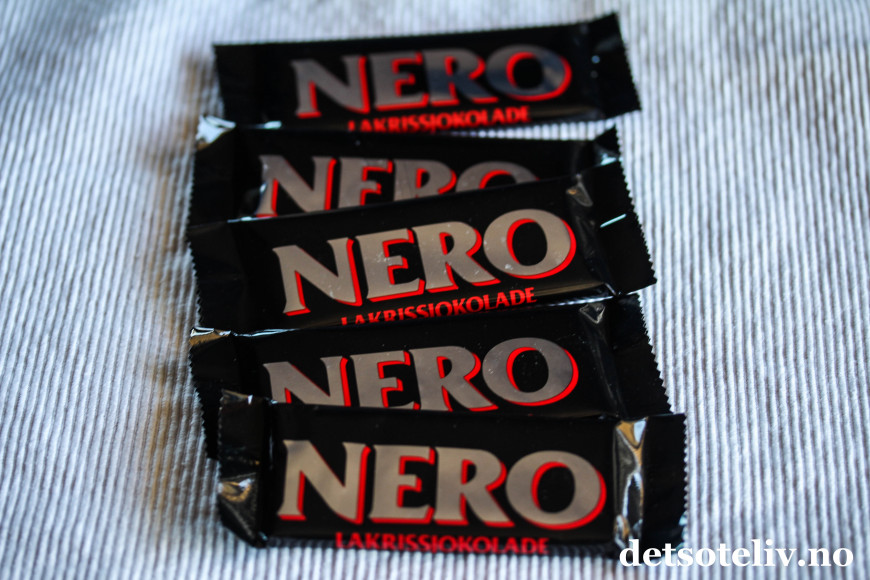 ♥ En Nero veier omtrent 40 gram, og består av myk, søt lakris som er dekket med et tynt lag mørk sjokolade.