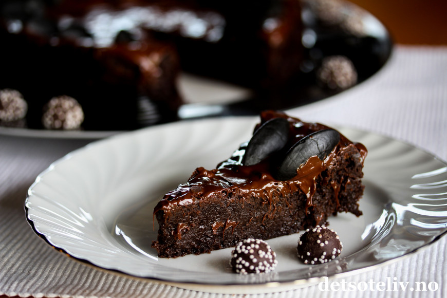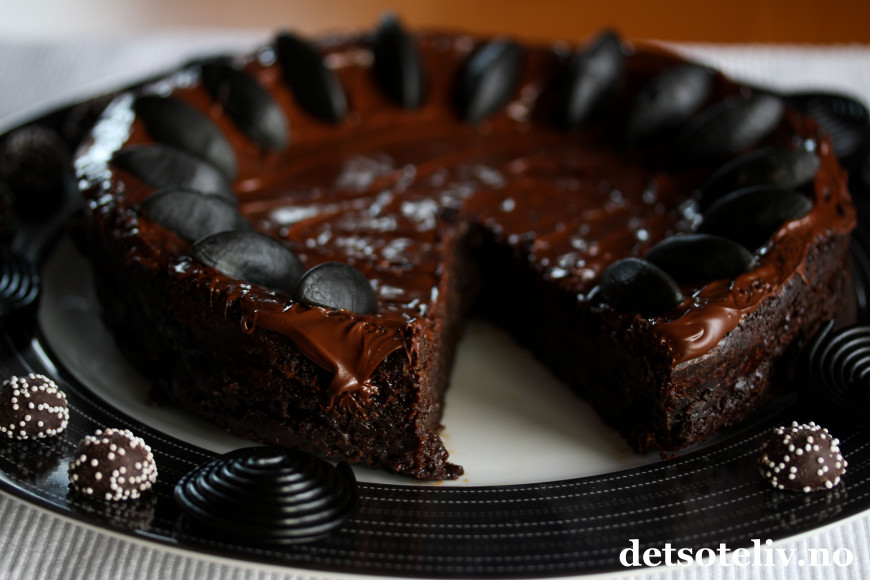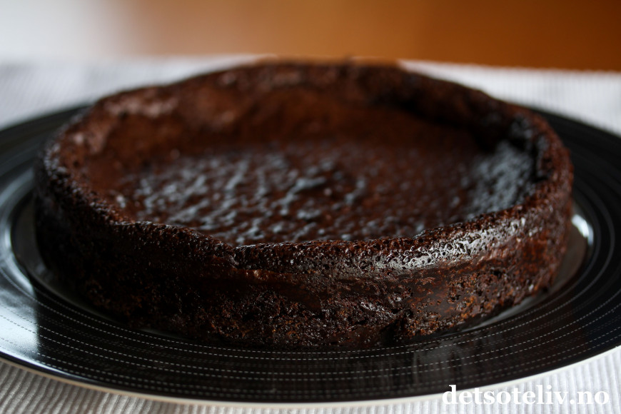 ♥ Se også oppskrift på en enda mørkere variant av samme type kake: Bocca Nero, eller se lavkarbovarianten Black Sunday.