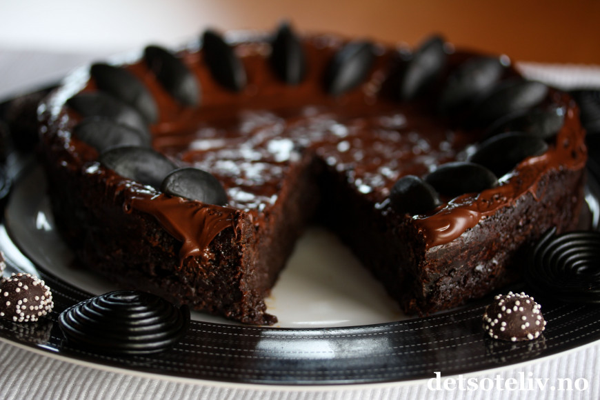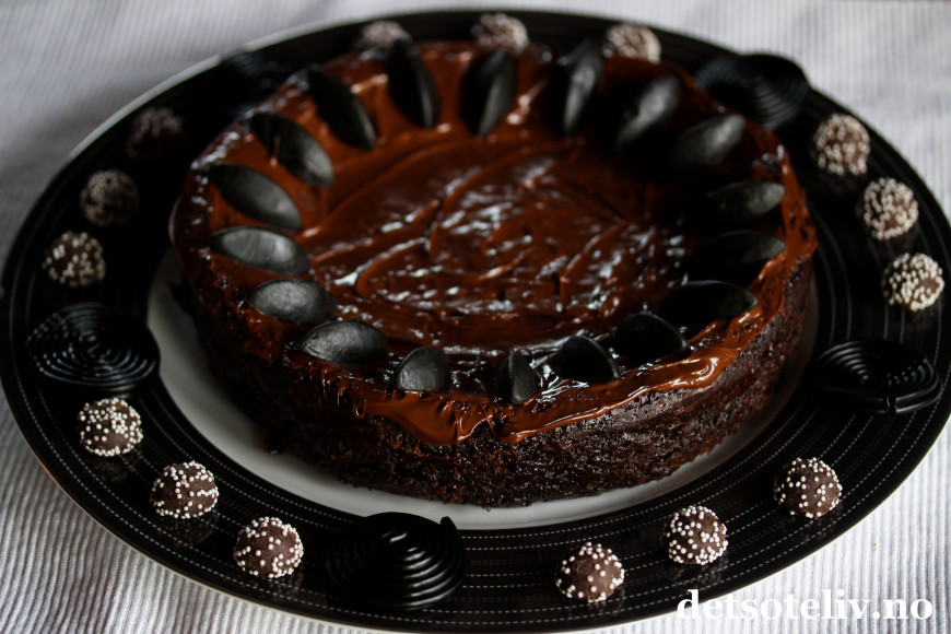 Men svart konfektkake som får fargen av kaffe, mørk sjokolade og lakris - DET er helt greit!