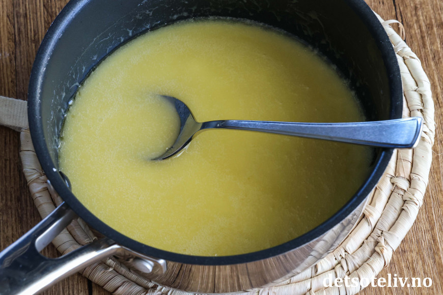 Varm opp på middels varme til smøret smelter og du får en klumpfri glasur.
