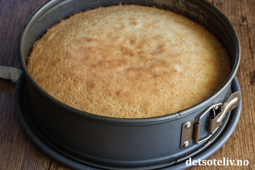 ♥ Merk at denne kaken bør stekes nederst i ovnen. Dette for å sikre at glasuren holder seg lys i fargen.