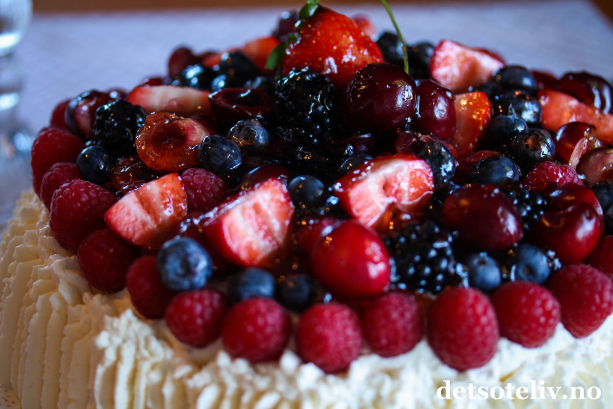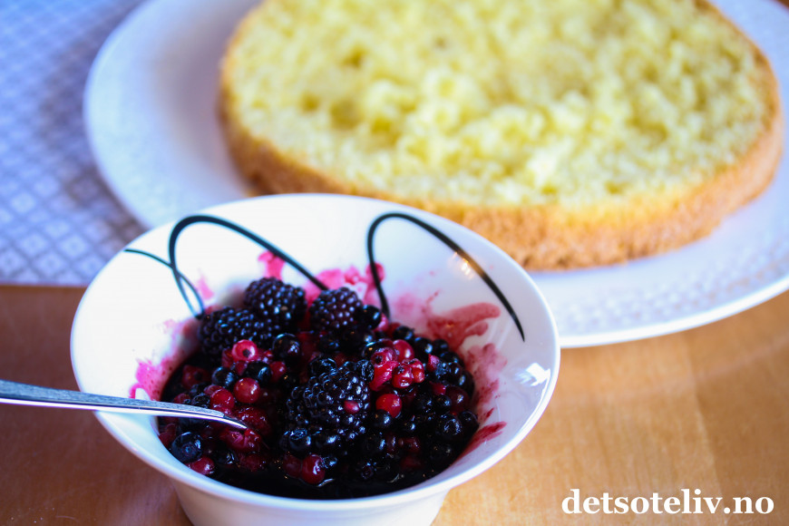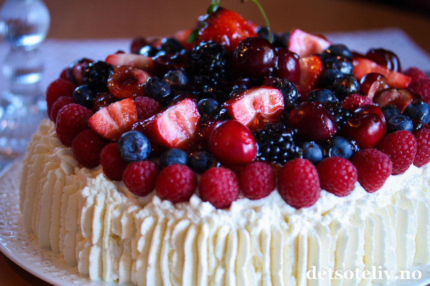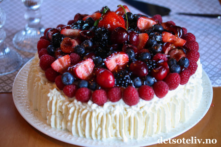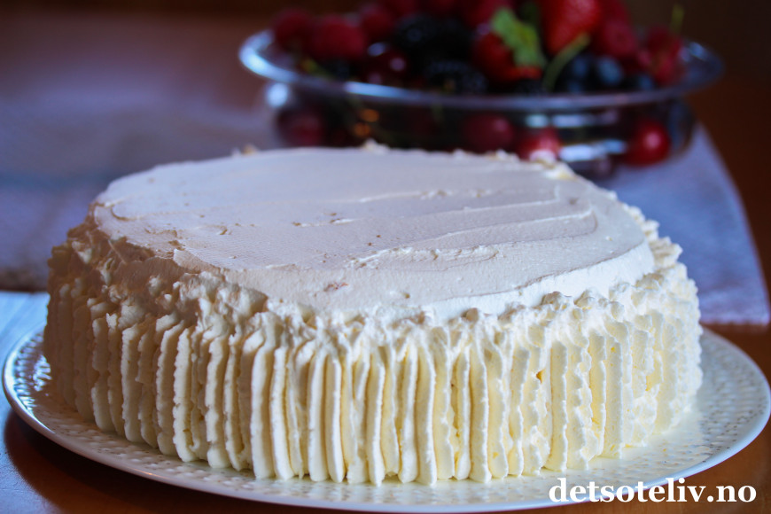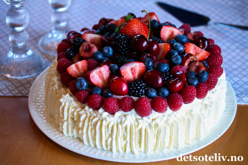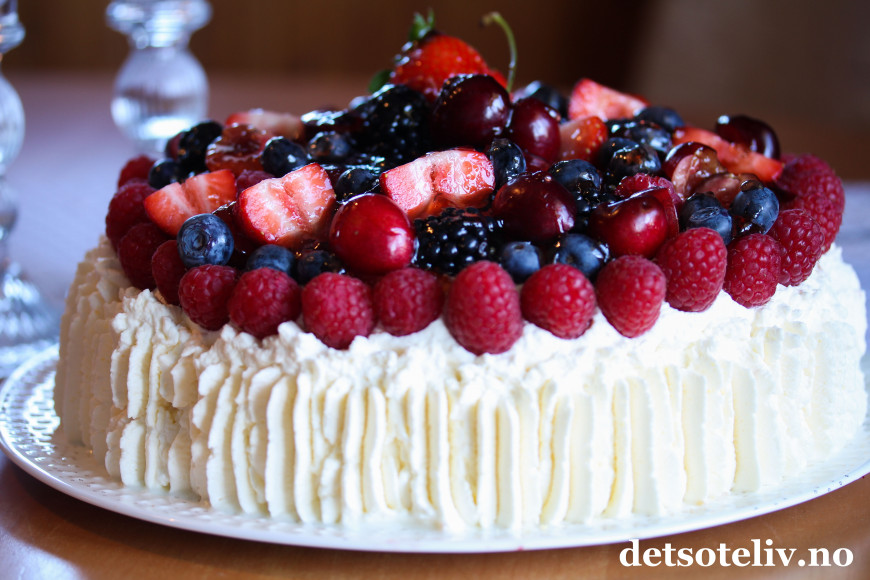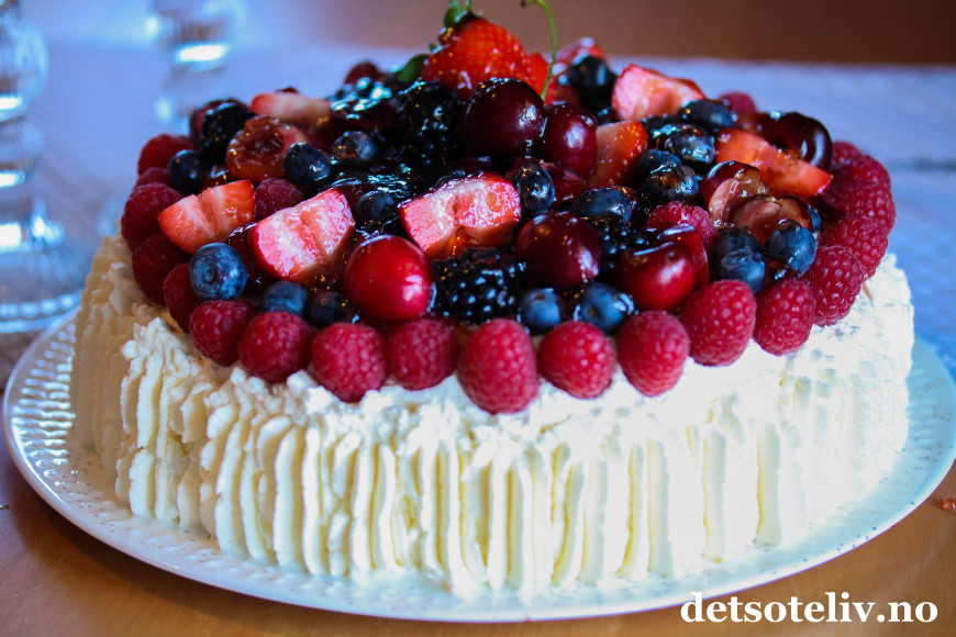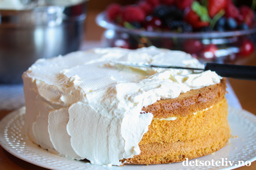 ♥ Kaken bør fylles og pyntes samme dag som den skal serveres slik at både kremen og bærene er ferske.
