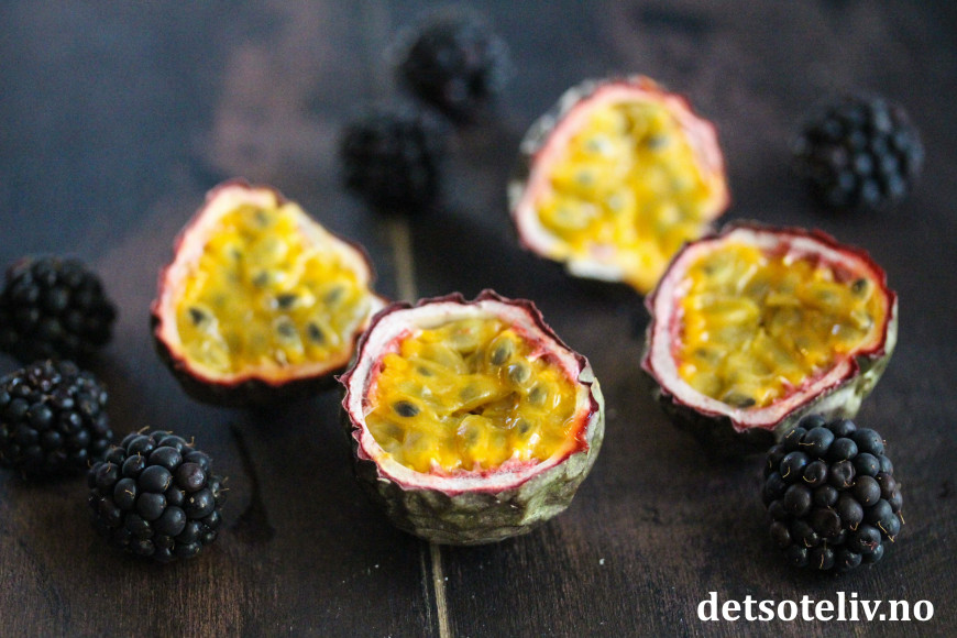 Bjørnebær og pasjonsfrukt er en fantastisk god smakskombinasjon!