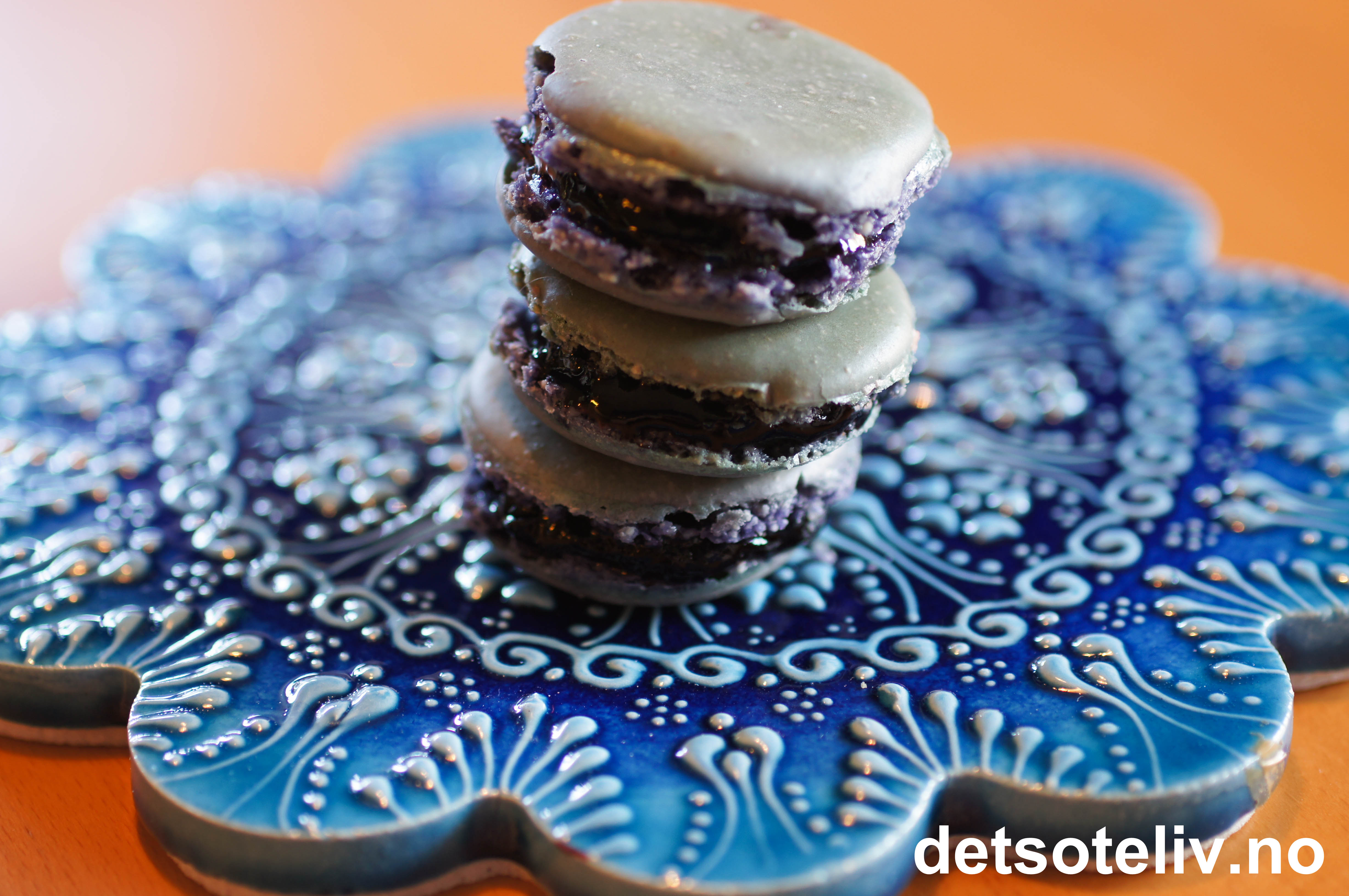 Utrolig lekre, mørkeblå macarons fylt med blåbærsyltetøy!
