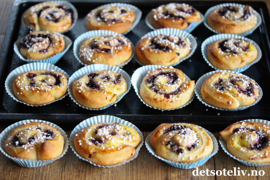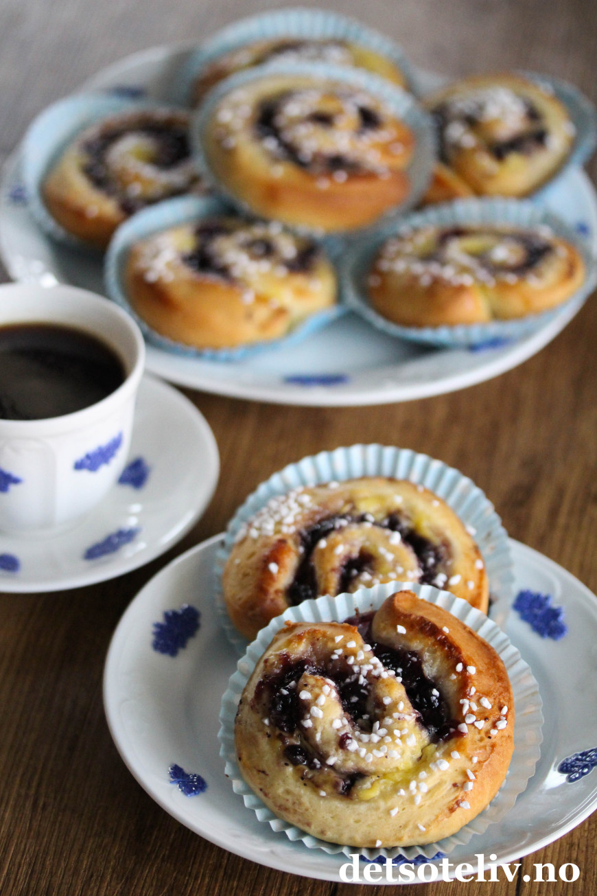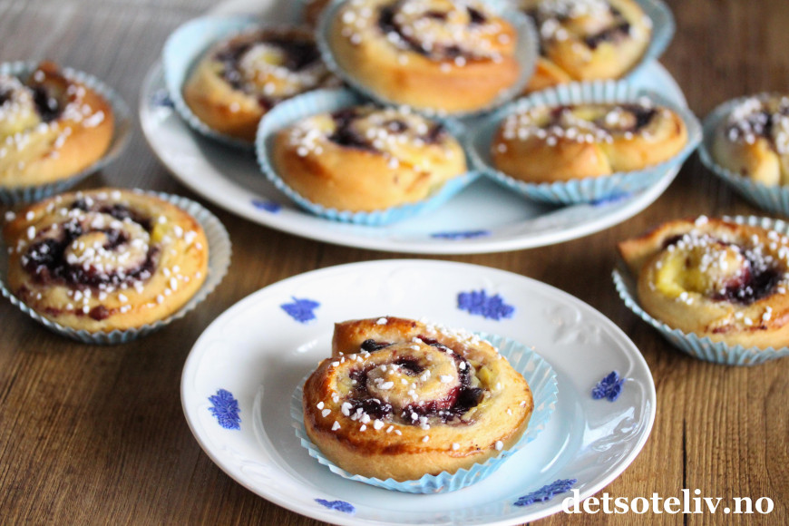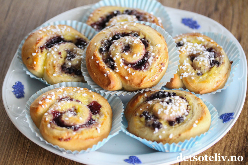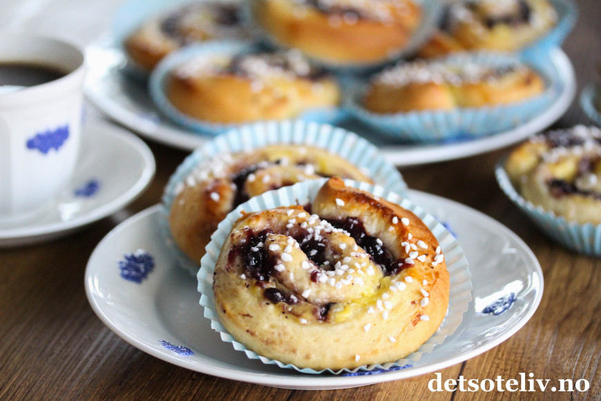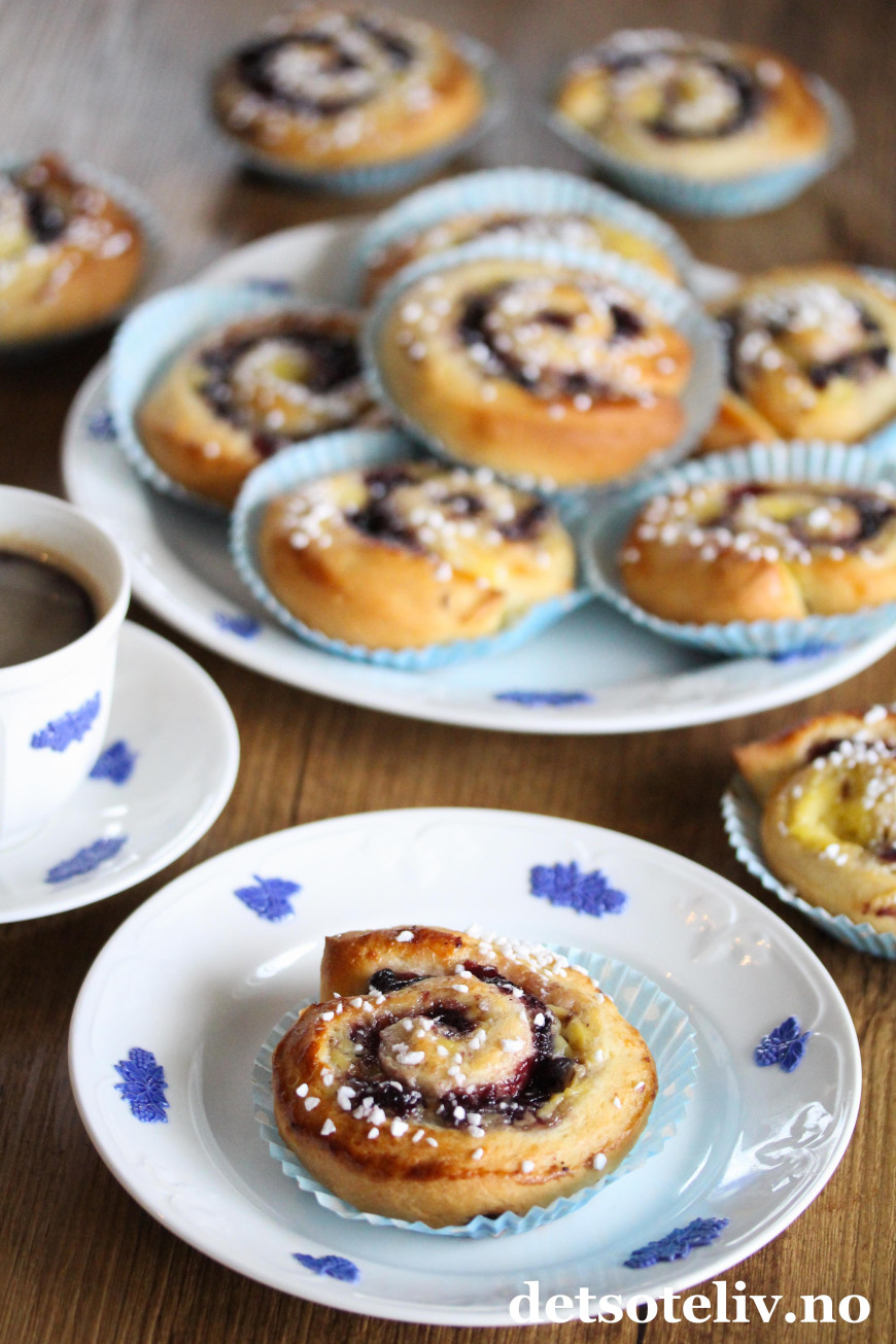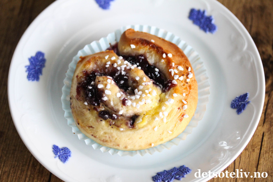 Originale og supergode boller med blåbærsyltetøy og vaniljekrem!
