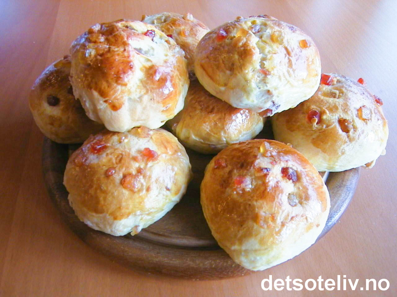 Smuldre opp gjæren i en bakebolle. Smelt smøret. Bland melken i smøret og varm opp blandingen til den er lunken (37°C). Ha litt av smørmelken i bakebollen og løs opp gjæren i dette. Tilsett resten av smørmelken, sukker og kardemomme. Begynn så å blande i det meste av melet til en jevn deig. La deigen heve tildekket i ca 1 time.