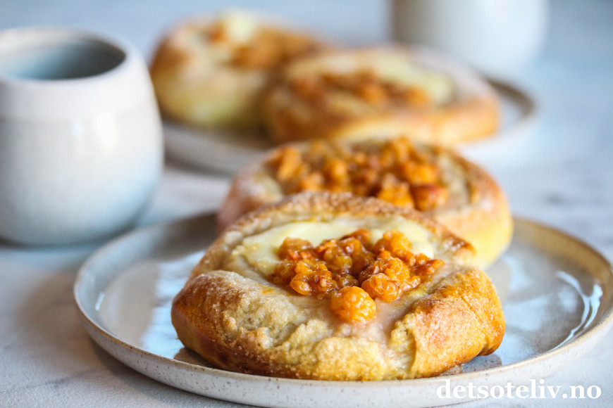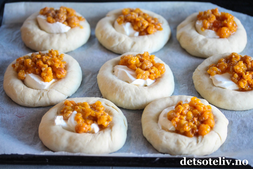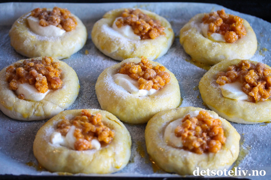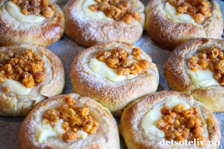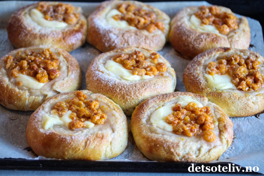 Store, myke boller med smak av seterrømme, multebær og sukkerdryss ... -