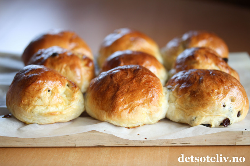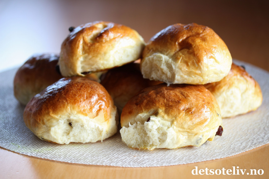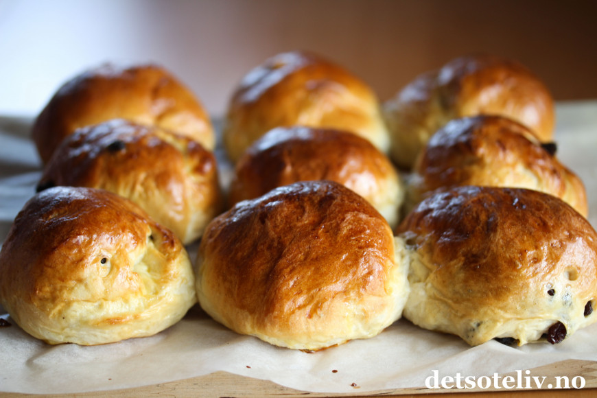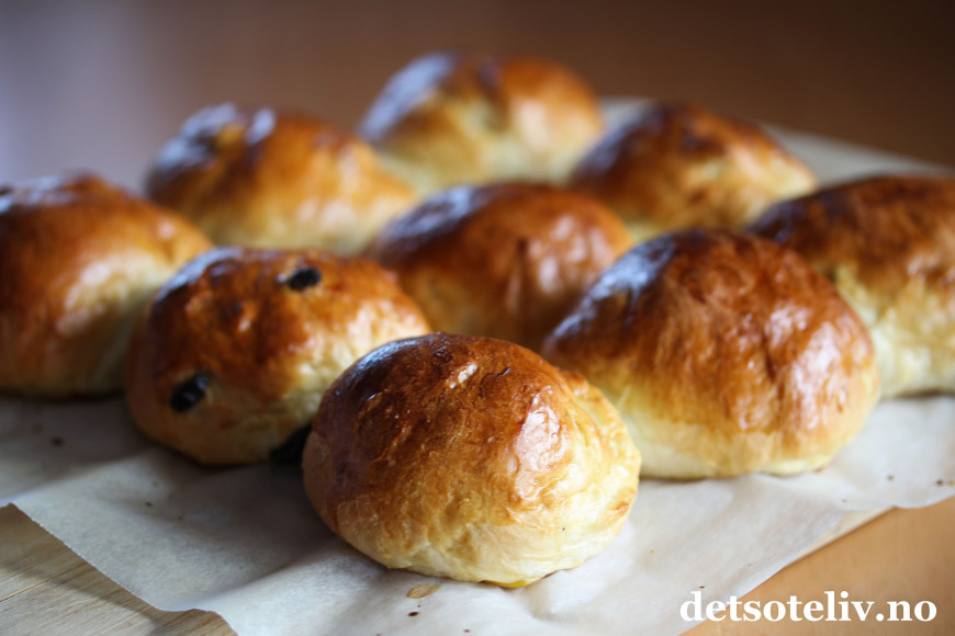 Sett bollene på bakepapirdekkede stekeplater. La dem heve lunt i ca. 30 minutter.