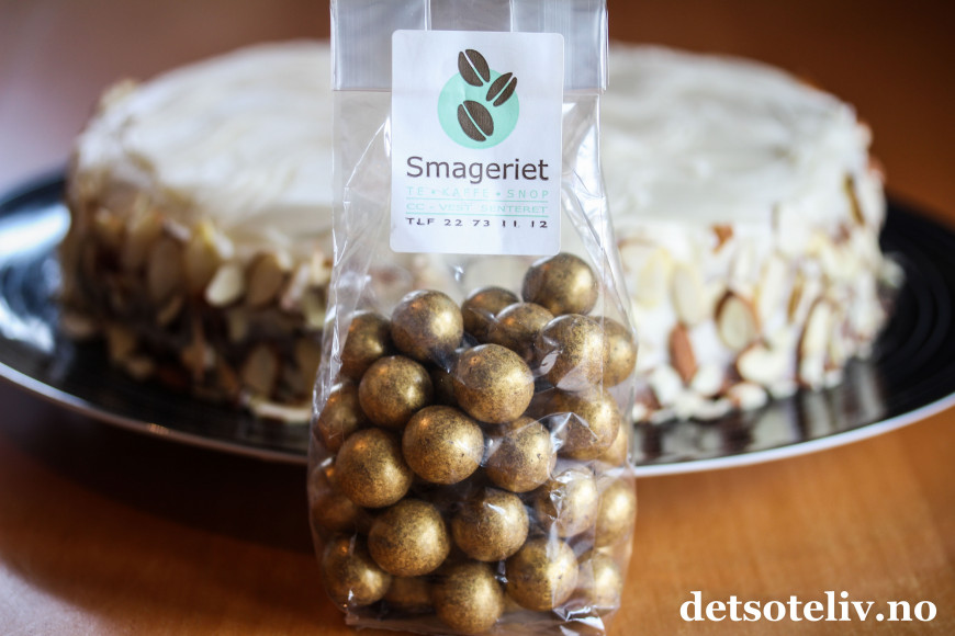 Jeg brukte disse vakre, gullfargede sjokoladekulene.