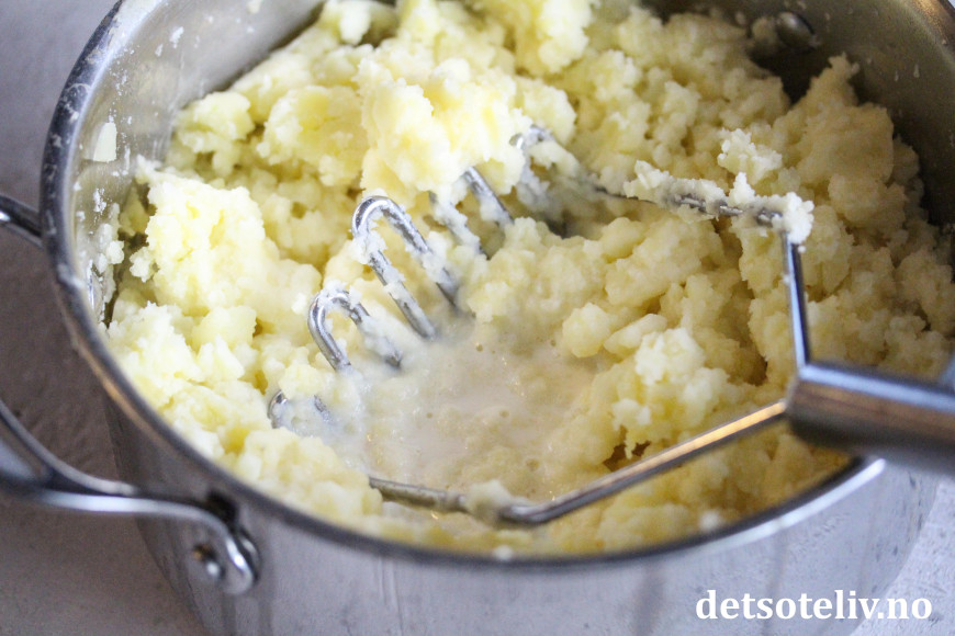 Mos de varme potetbitene med en potetstamper eller potetpresse. NB! Ikke bruk stavmikser (se tips).