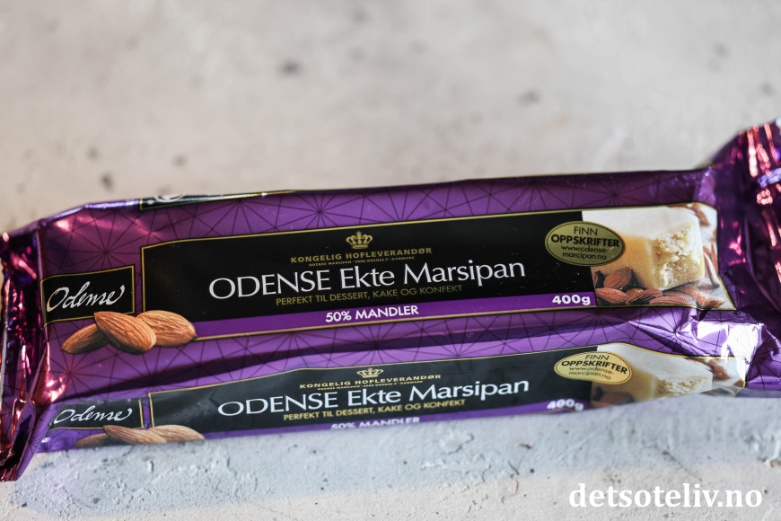 ♥ Til fyllet er det viktig at du bruker såkalt ekte marsipan som har høyt innhold av mandler. Figurmarsipan med lavere mandelinnhold tåler steking veldig dårlig.