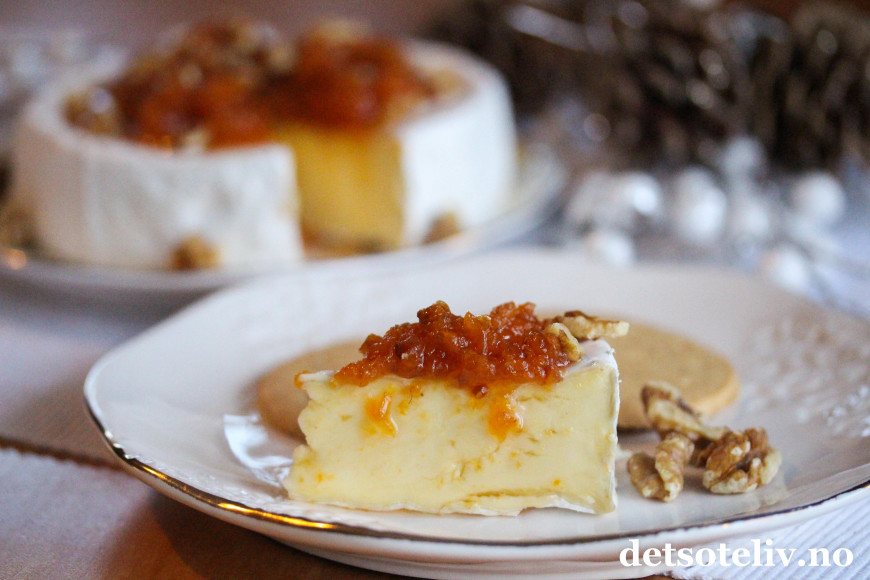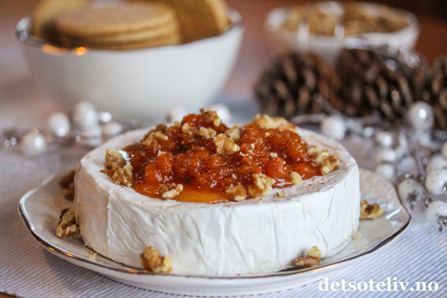 Her serverer jeg en Brie de Paris med hjemmelaget multesyltetøy og valnøtter.