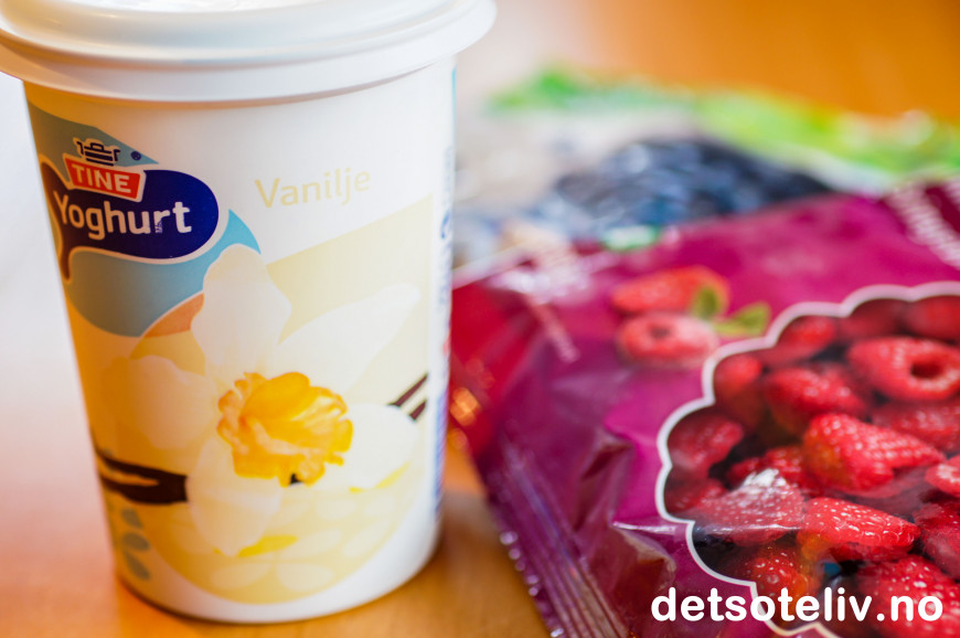♥ Får du ikke tak i vaniljeyoghurt, kan du bruke yoghurt naturell, men da bør du tilsette en del mer sukker og også gjerne litt vaniljeekstrakt for å få vaniljesmaken.