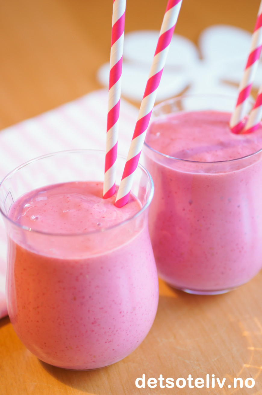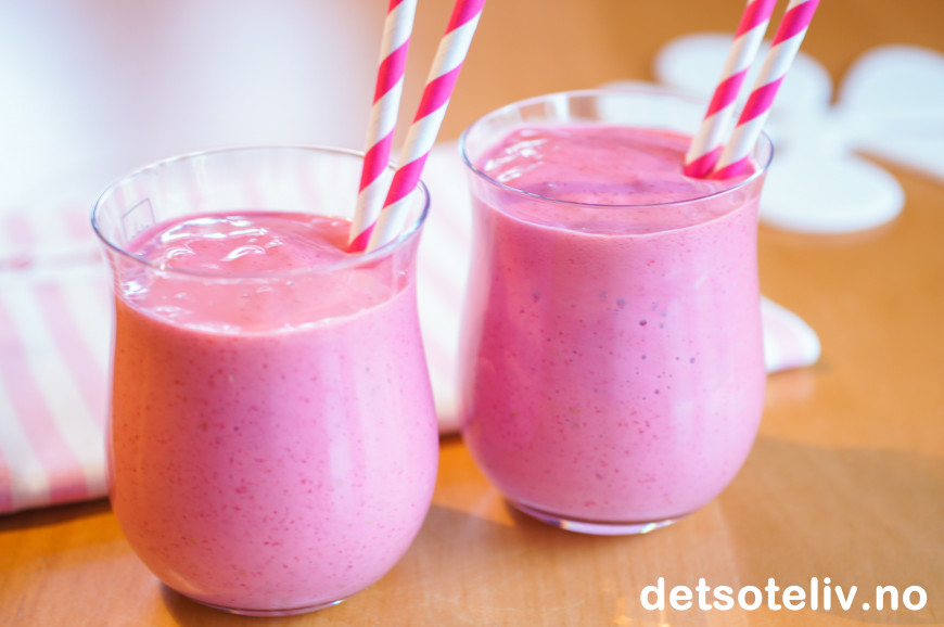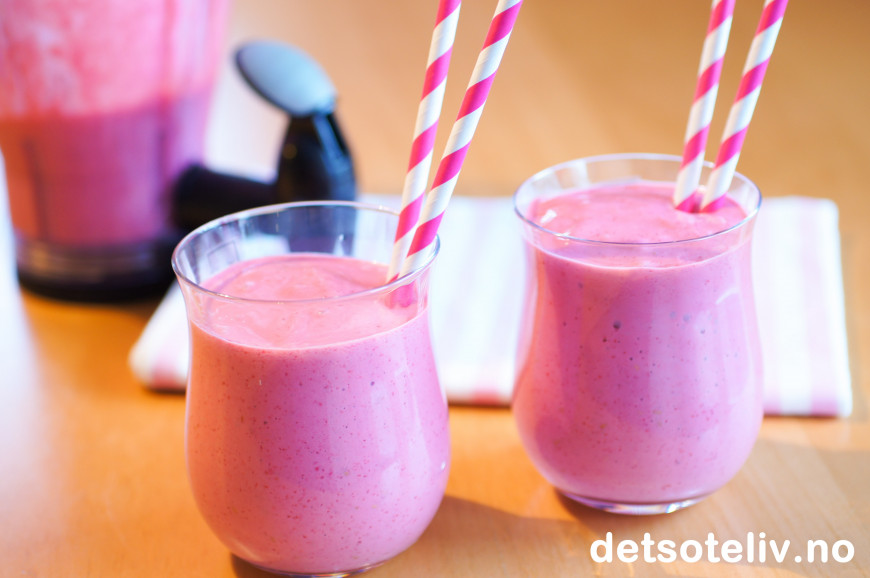 ♥ Du kan lage lignende smoothie med vaniljeyoghurt og andre typer frosne bær. Det blir for eksempel også veldig godt å bruke 300 g frosne blåbær.